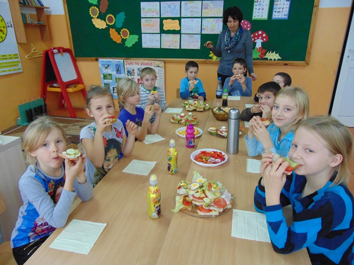 7 listopada po raz kolejny dzieci klas 0-III wzięły udział w ogólnokrajowej akcji "Śniadanie daje moc". Dzieci przygotowały pyszne, zdrowe i kolorowe śniadanie pod kierunkiem wychowawcy. Uczniowie pracowali aktywnie. Posiłęk był bardzo urozmaicony i już swoim wyglądem zachęcał do spożycia. Na koniec uczniowie skonsumowali to, co wcześniej przygotowali. Wszyscy jedli bardzo chętnie. Akcja miała na celu uświadomienie dzieciom, jak ważne jest dostarczenie organizmowi niezbędnych składników już na początku dnia. Śniadanie nie musi być nudne - powinno być smaczne i zdrowe, bo "Śniadanie Daje Moc".