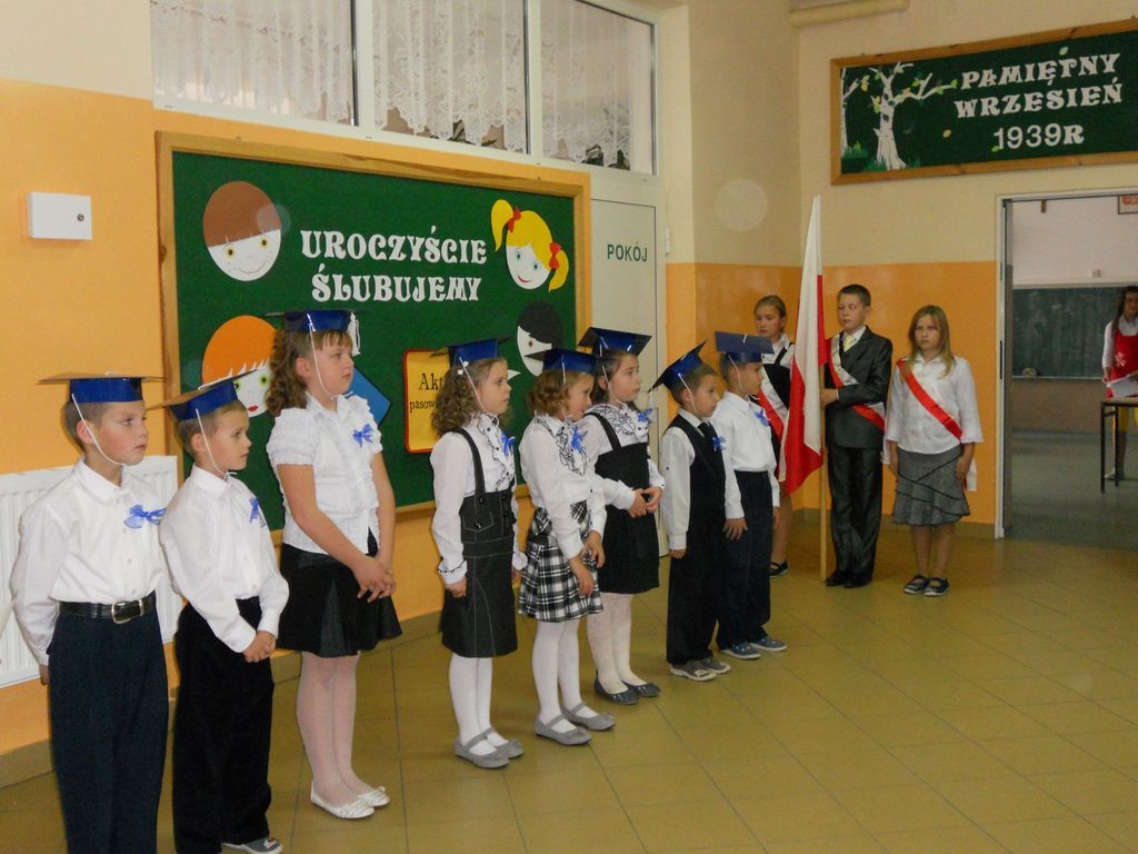 Ślubuję być dobrym Polakiem, dbać o dobre imię swojej klasy i szkoły. Będę uczyć się w szkole, jak kochać Boga i Ojczyznę, jak dla niej pracować, kiedy urosnę. Będę starał się być dobrym kolegą, swym zachowaniem i nauką sprawić radość rodzicom i nauczycielom.