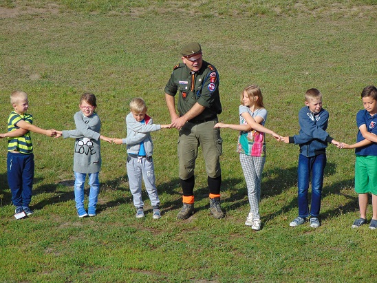 Goście zaśpiewali nam kilka harcerskich piosenek. Wspólnie utworzyliśmy krąg i przekazaliśmy sobie iskierkę.