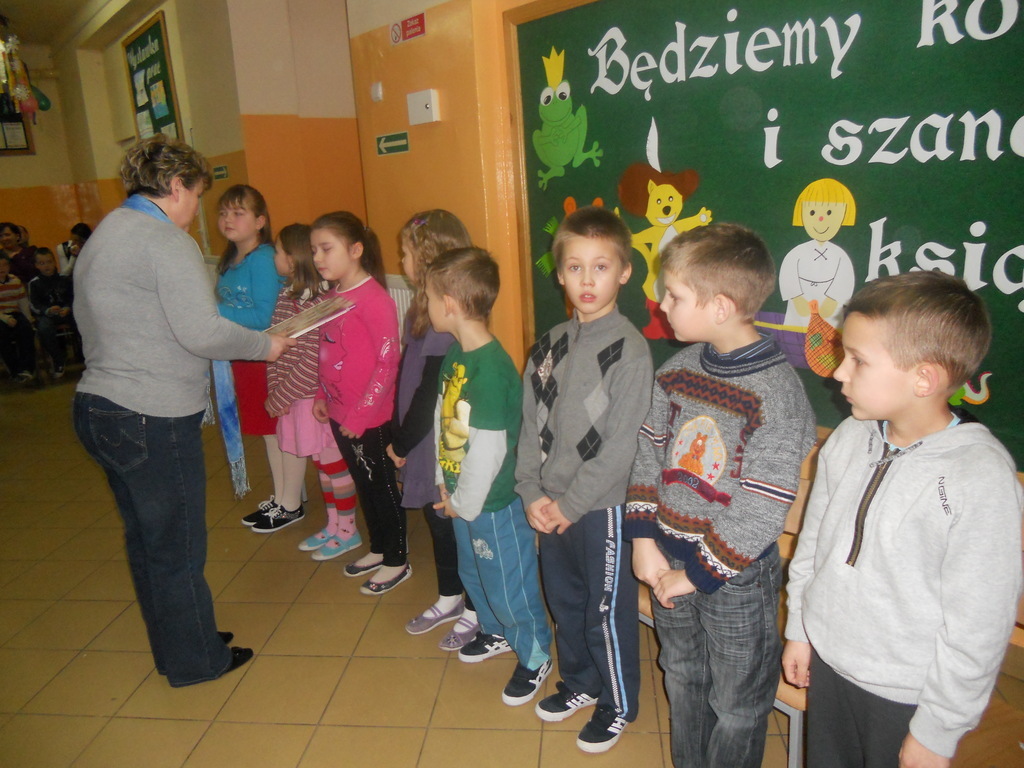 Kulminacyjnym momentem było złożenie przyrzeczenia oraz pasowanie pierwszaków na czytelników szkolnej biblioteki, którego dokonała pani dyrektor Maria Deptuła. Dzieci otrzymały dyplomy pasowania na czytelnika i zakładki do książek.