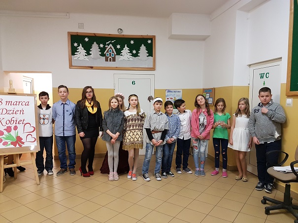 Uczniowie klas starszych dziękowali paniom, które pracują z nimi w szkole i swoim koleżankom za codzienną obecność. Podkreślali ogromną rolę kobiet we współczesnym świecie.