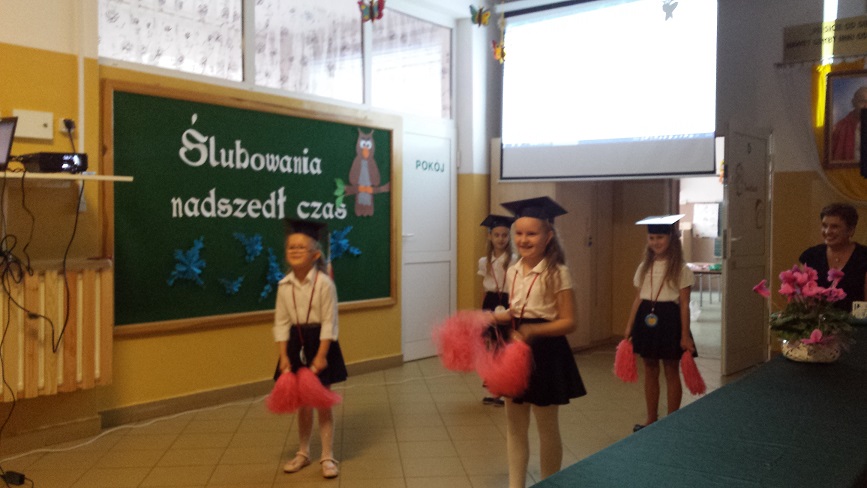 Dzieci przygotowały część artystyczną pod opieką pani Ireny Woźnicy i Moniki Wróbel. Swoim występem udowodniły, że zasługują na przyjęcie do społeczności uczniowskiej.