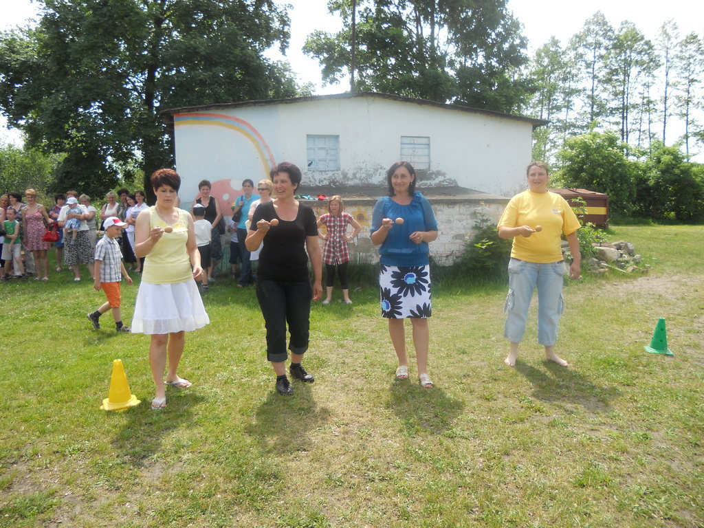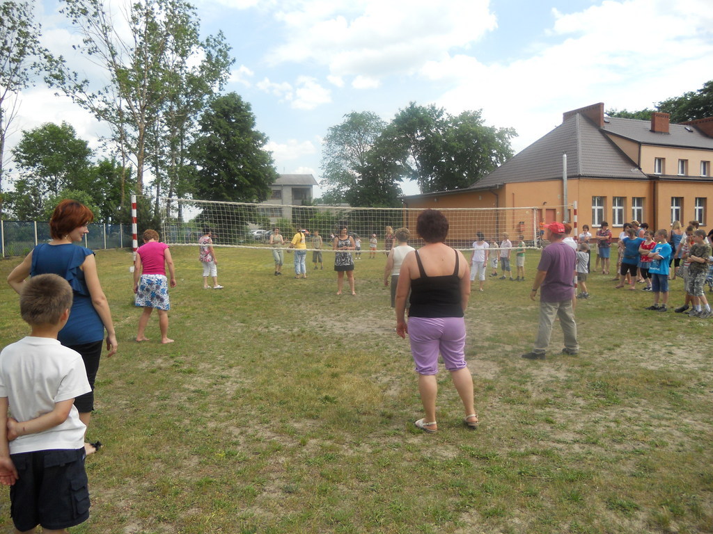Kolejnym punktem programu były zawody sportowe. Rodzice i dzieci zmierzyli się w następujących konkurencjach: rzut oponą, rzut młotem, bieg z szarfami, sztafeta z jajkiem, bieg w workach, mecz piłki siatkowej.