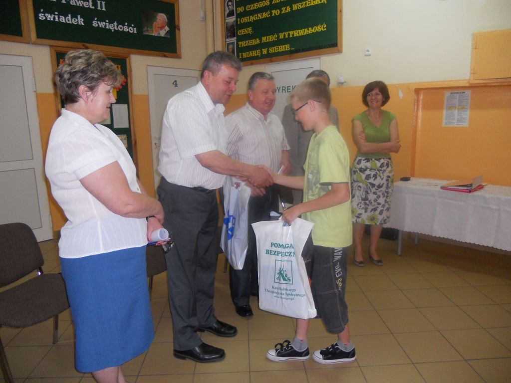 Wysiłek chłopców został nagrodzony niespodziankami przygotowanymi przez pana wójta i przedstawicieli KRUS-u. Pan Kołodziejski złożył gorące podziękowania na ręce pań nauczycielek, które czuwały nad przygotowaniem prac. Pani Janina Jaworska i Irena Woźnica otrzymały pamiątkowe dyplomy.
