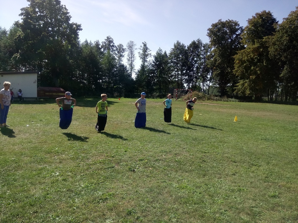 W tym dniu uczniowie klas 0-III wyszli na boisko, gdzie po krótkiej rozgrzewce przy muzyce przystąpili do rywalizacji w następujących konkurencjach sportowych: bieg w workach, bieg z szarfami, rzut woreczkiem do celu.