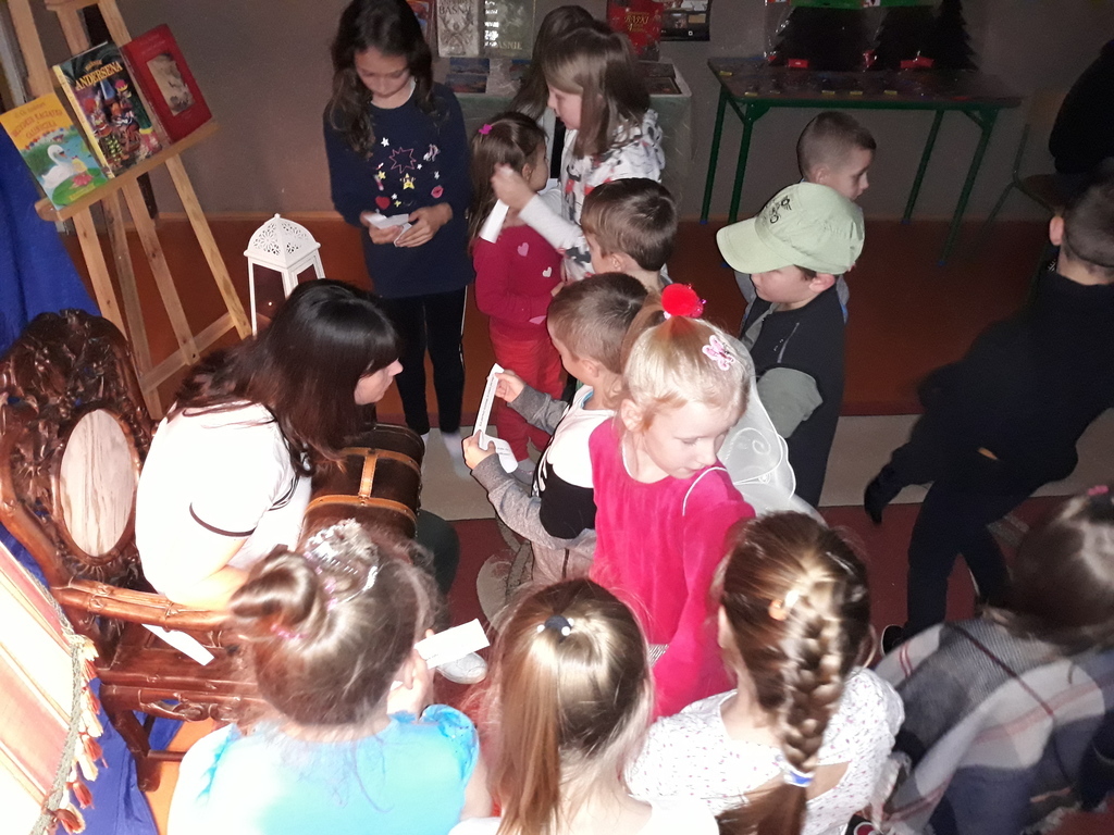Pierwsza część spotkania dedykowana była młodszym dzieciom, które przyszły, aby posłuchać czytanych przez starsze dzieci i opiekunów baśnie. Czekały ich również konkursy: Konkurs znajomości treści baśni oraz konkurs plastyczny.