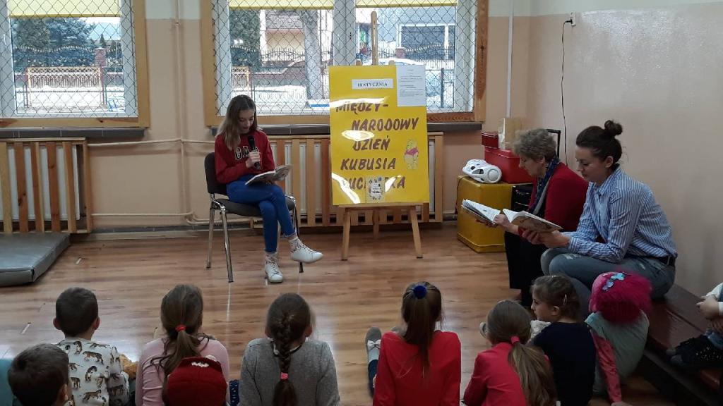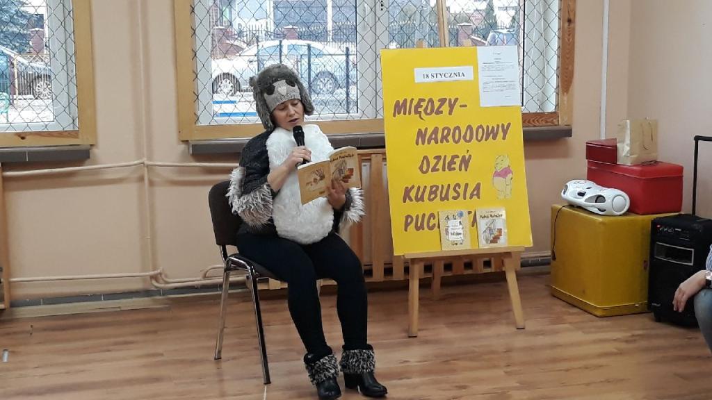 18 stycznia w Międzynarodowym Dniu Kubusia Puchatka biblioteka szkolna zorganizowała akcję czytelniczą "Starsi czytają Młodszym przygody Kubusia Puchatka". Dzieciom klas I-IV i przedszkolakom czytali uczniowie klasy V ( Hubert Domański) i VI ( Karolina Dziewulska, Oliwia Ogrodnik, Kinga Falba, Kamila Kucharczyk, Kamila Godlewska)oraz Rodzice:P. Sylwia Staniaszek oraz P. Agnieszka Kasjaniuk. Celem było rozwijanie zainteresowań czytelniczych dzieci i młodzieży. Dzieci chętnie odpowiadały na pytania bibliotekarza dotyczące przeczytanych fragmentów książki "Kubuś Puchatek". Miłym zakończeniem był słodki poczęstunek dla wszystkich uczestników akcji. Pani Beata Palasek zaprosiła dzieci na kolejną akcję czytelniczą "Fere zimowe z książką". Przed feriami wszystkie dzieci miały możliwość wypożyczenia większej ilości książek polecanych przez bibliotekarza. Dzieci chętnie wybierały książki z nowości czytelniczych otrzymanych z Narodowego Programu Rozwoju Czytelnictwa.