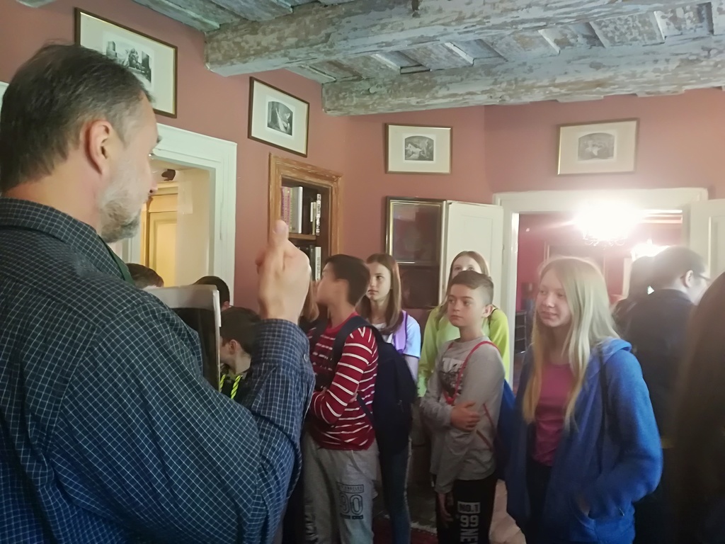 Uczestnicy wyprawy zwiedzili dom i obejrzeli ogród wokół dworku.
