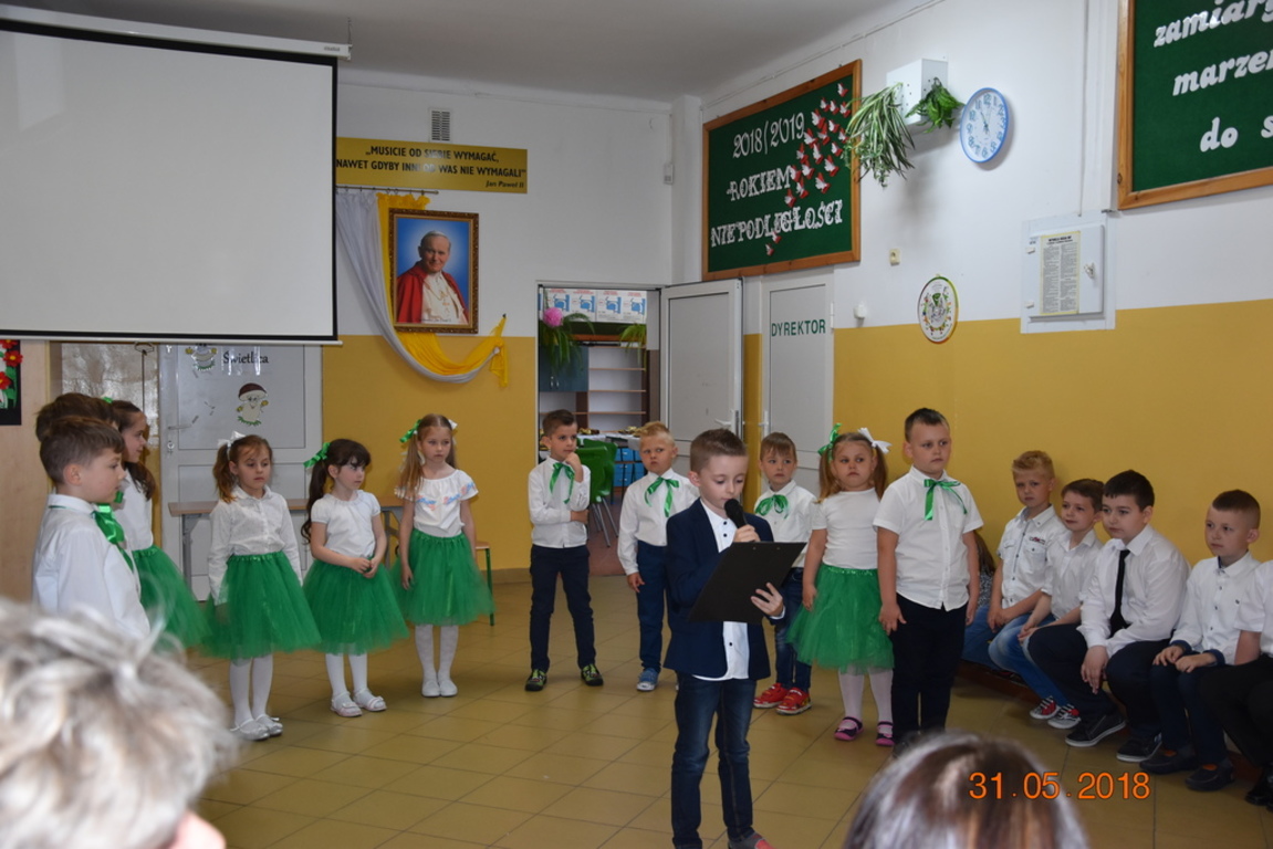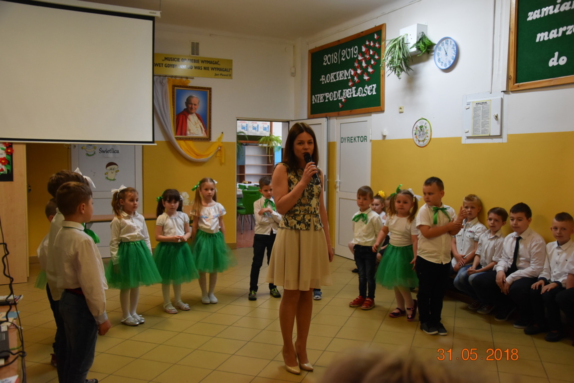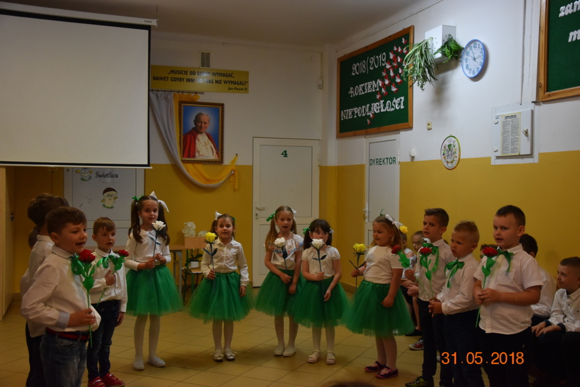 31 maja w szkole uroczyście obchodzono Święto Rodziców. Najmłodsze dzieci - z klas 0-III -wystąpiły z wcześniej przygotowanym programem. Ubrani elegancko zaprezentowali swoje umiejętności taneczne, wokalne i aktorskie. Występy zakończyły dwie uczennice klasy VII, które zaśpiewały solo piękne, wzruszające piosenki o mamie. Rodzice byli bardzo wzruszeni, brawami podziękowali dzieciom za występ. Pociechy wręczyły swoim rodzicom laurki i kwiaty oraz zaprosiły na słodki poczęstunek.