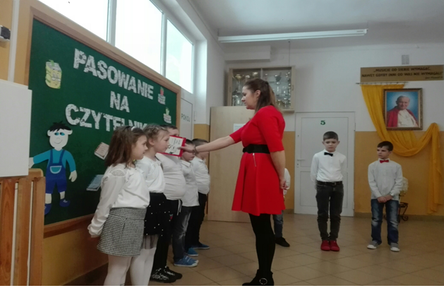 10 lutego 2021 roku w Szkole Podstawowej im. Jana Pawła II w Bielinie odbyło się Uroczyste Pasowanie Na Czytelnika Biblioteki Szkolnej uczniów klasy I. Uroczystość rozpoczęła się krótkim przedstawieniem pt: „ W krainie książek” które przygotowali uczniowie klasy II. Następnie odbył się konkurs, który przeprowadziła Pani Dyrektor – uczniowie klasy I musieli odgadnąć tytuły bajek i baśni na podstawie przedstawianych rekwizytów. Uczniowie wykazali się bardzo dobrą znajomością baśni i bajek odgadując tytuły wszystkich utworów. Po konkursie uczniowie klasy pierwszej złożyli uroczystą przysięgę i zostali pasowani na pełnoprawnych czytelników biblioteki. Na pamiątkę tej uroczystości uczniowie otrzymali pamiątkowe książki, dyplomy, zakładki i długopisy.