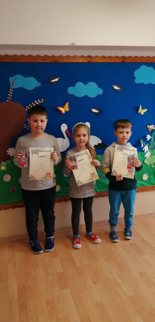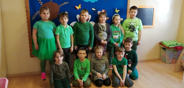 22 marca dzieci z oddziału przedszkolnego witały wiosnę. Tego dnia przyszły do przedszkola ubrane na zielono. Wzięły udział w konkursie plastycznym pt. „Portret Pani Wiosny”.