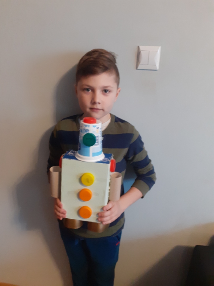 Z okazji Dnia Ziemi uczniowie klasy II uczyli się jak chronić naszą planetę i dbać o środowisko oraz wykonali roboty i rakiety z rzeczy, które można ponownie przetworzyć. Swoje pomysły prezentują na zdjęciach poniżej.