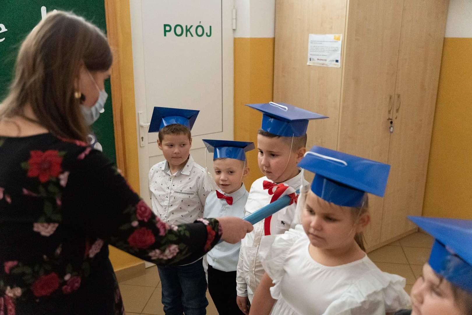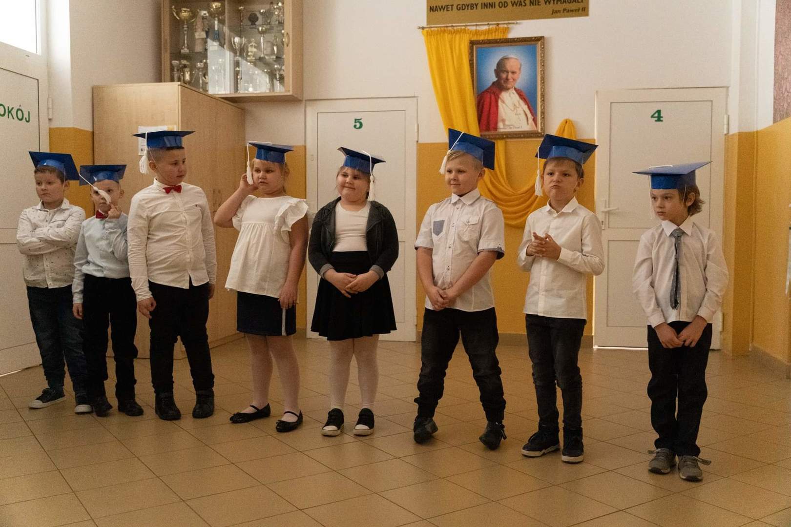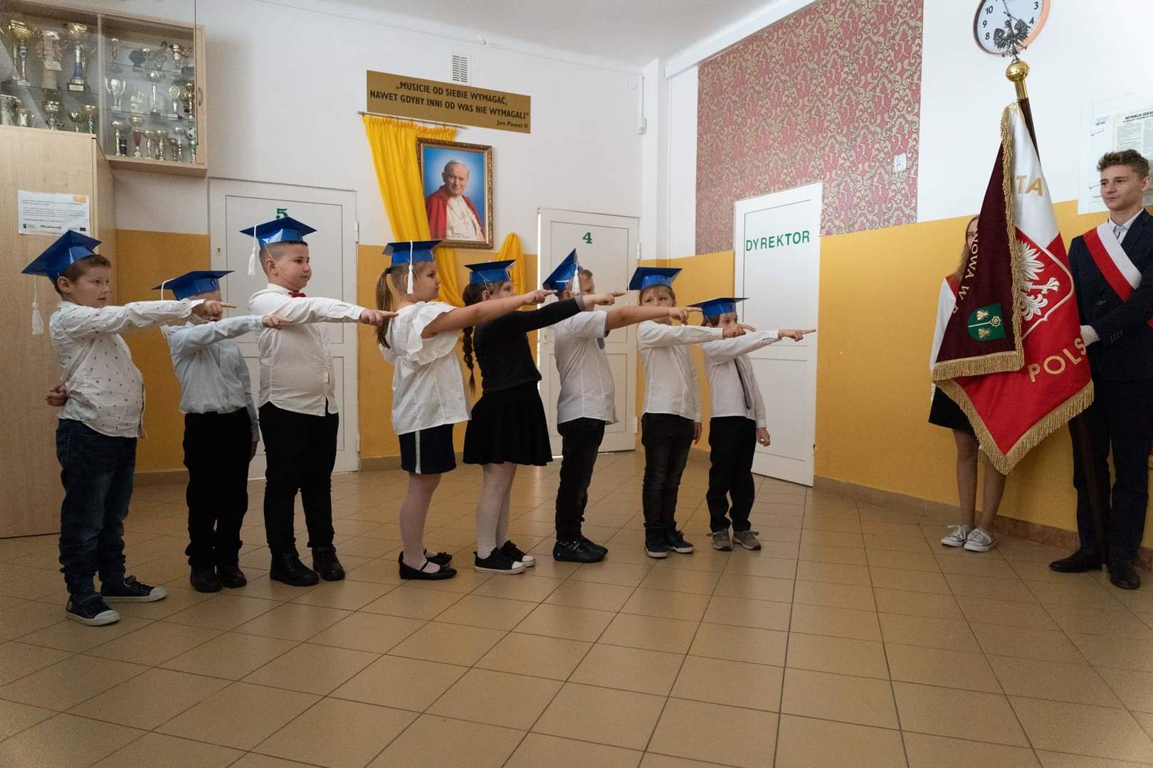 Na koniec, pełniąca obowiązki dyrektora skierowała do pierwszaków słowa naszego patrona Jana Pawła II: „Musicie od siebie wymagać, choćby inni od Was nie wymagali”. Złożyła im również życzenia, aby nauka była dla nich przyjemnością, a rozpoczęta wyprawa po wiedzę, trwała przez całe życie.