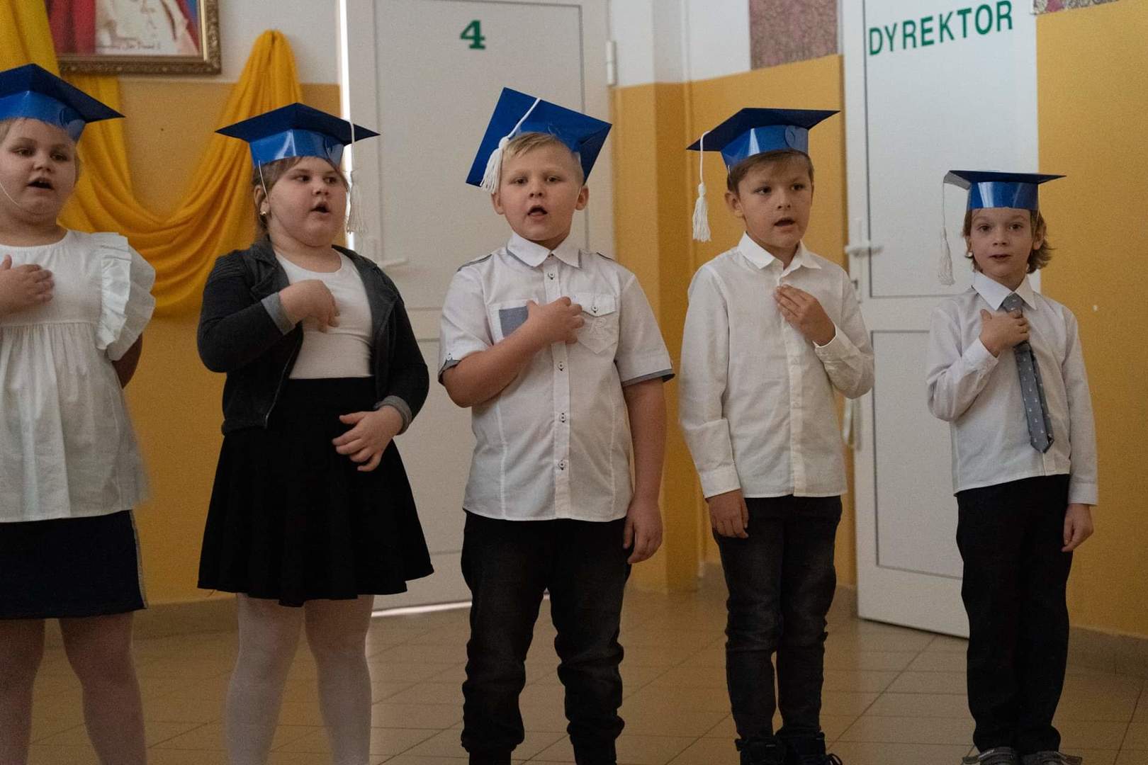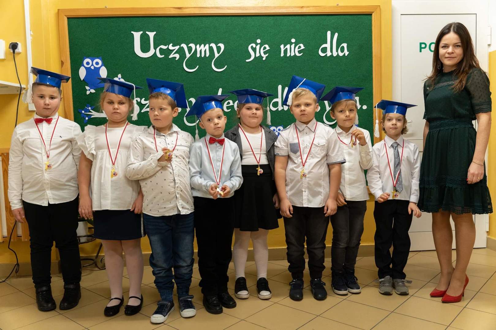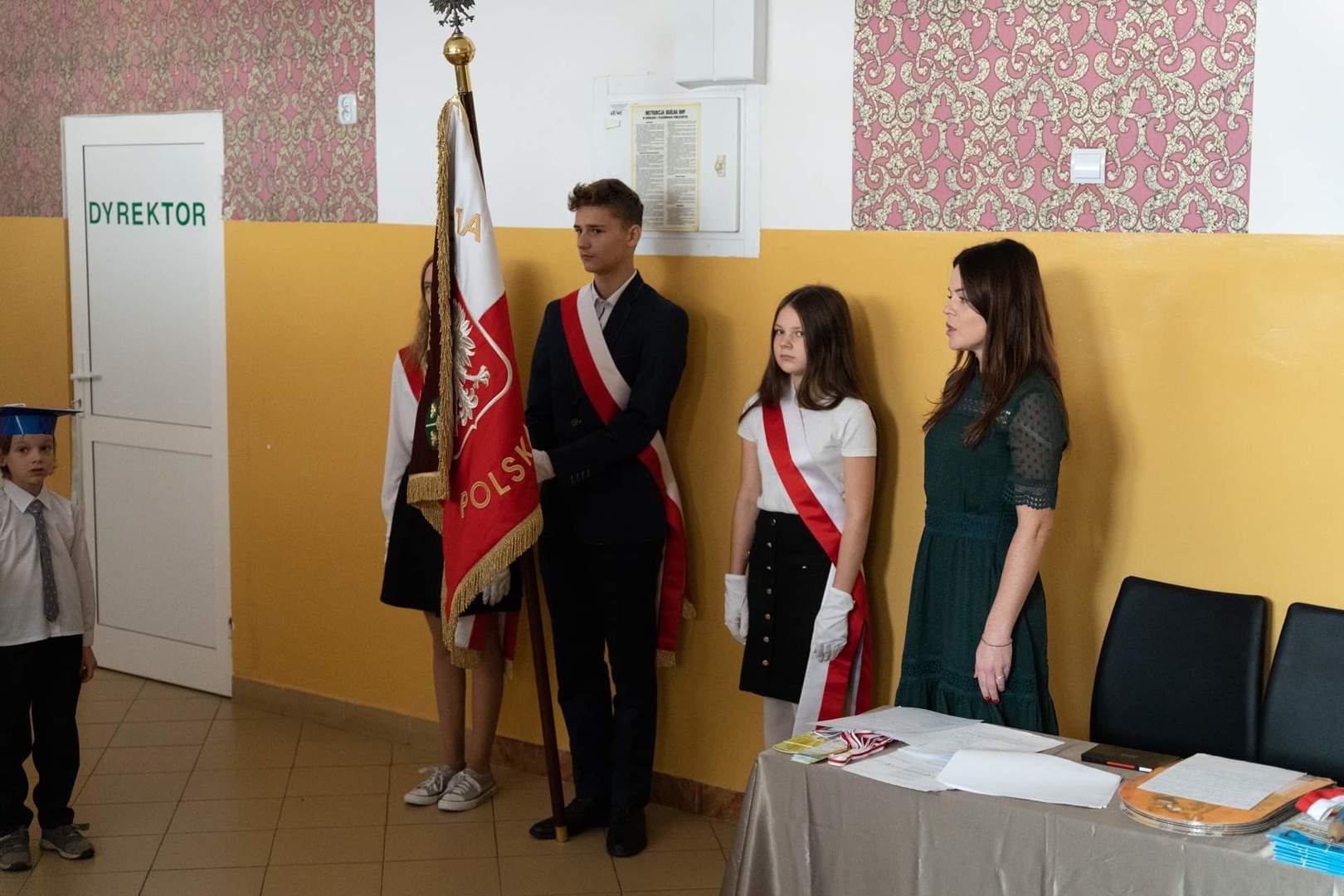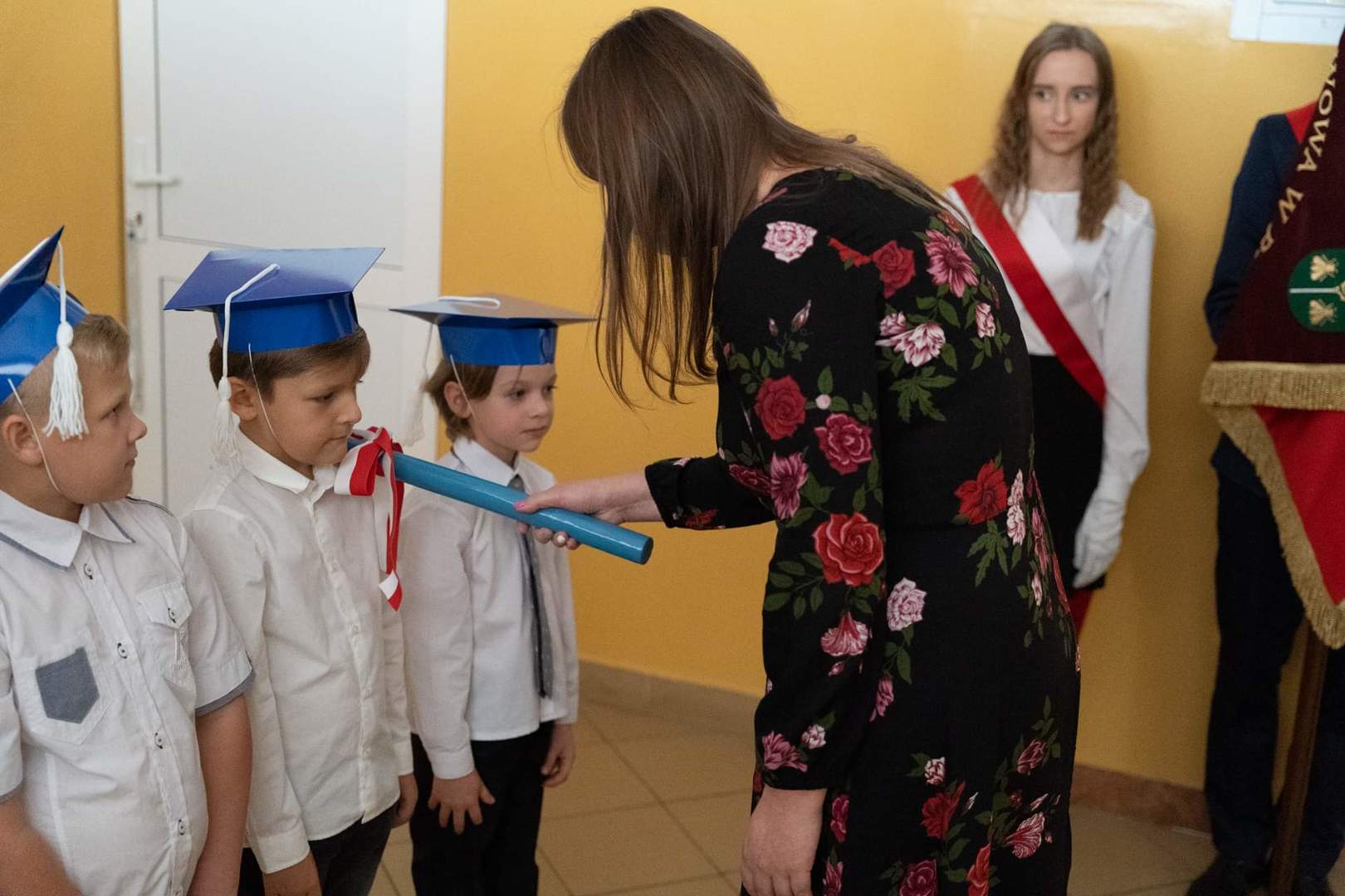 W podniosłej atmosferze, dzieci klasy pierwszej ślubowały na sztandar być dobrymi Polakami, godnie reprezentować swoją szkołę i zdobywać wiedzę. Po ślubowaniu p. Jolanta Gołębiewska dokonała symbolicznego pasowania na ucznia.