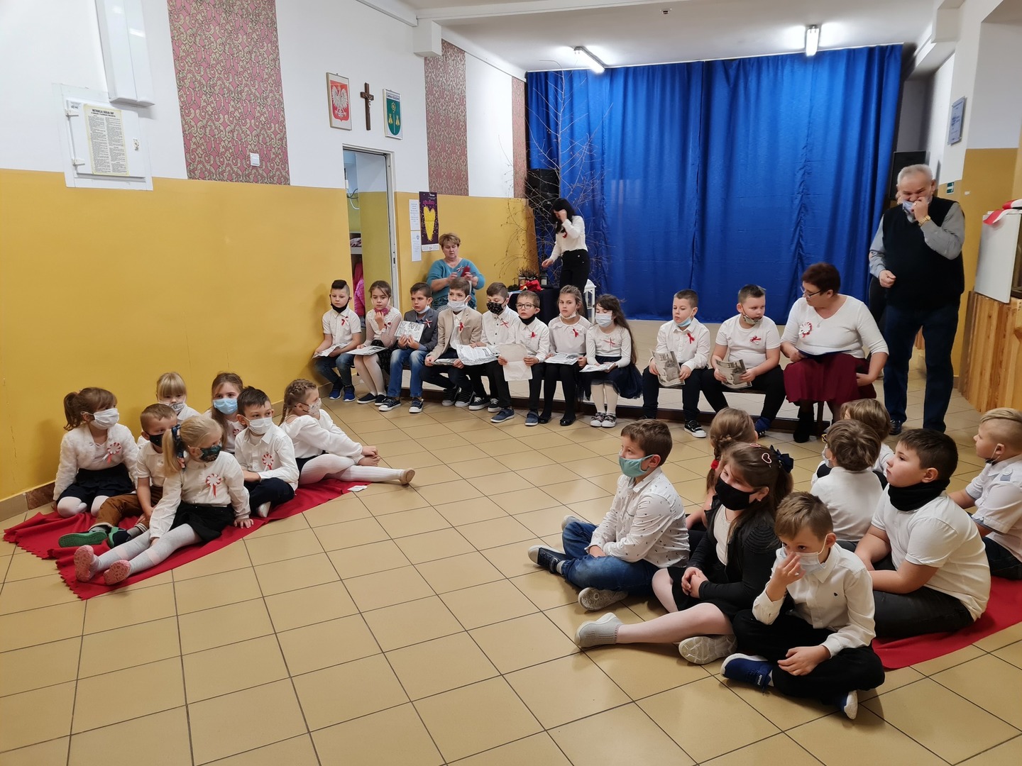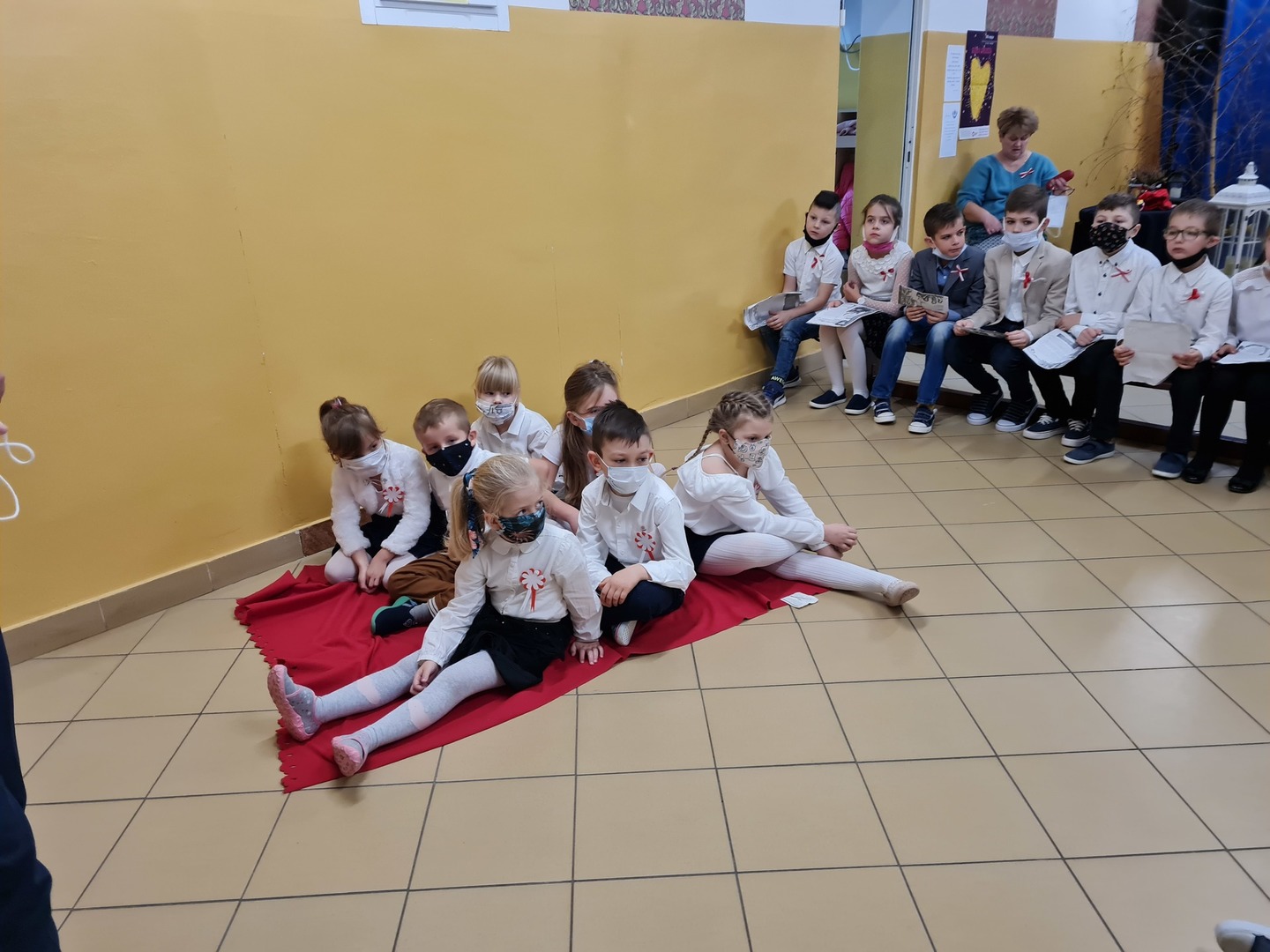 Na zakończenie spotkania, dzieci otrzymały ilustracje, przedstawiające godło Polski i postać Józefa Piłsudskiego, które później kolorowały.