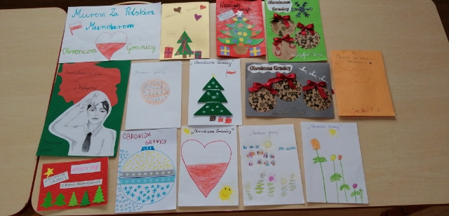 Dzieci wykonały piękne laurki z życzeniami wdzięczności za obronę naszej granicy.