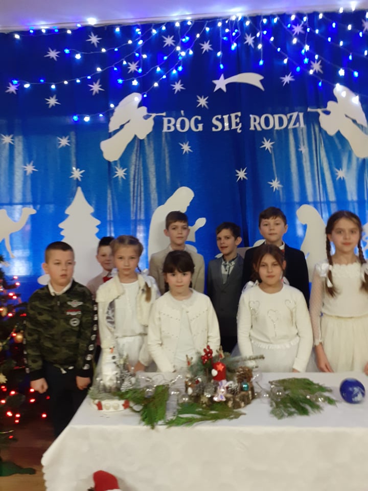 Uczniowie klas 1- 6 w ramach Szkolnego Przeglądu Kolęd i Pastorałek zaśpiewały pastorałki i kolędy, które zostały udostępnione społeczności szkolnej. Klasa 4 złożyła wszystkim świąteczne życzenia.