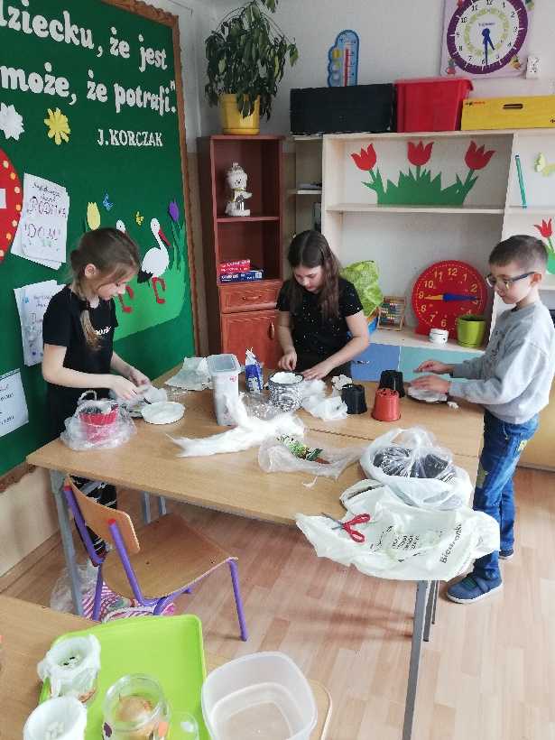 Uczniowie klasy II prowadzą kącik przyrodniczy, w którym założyli hodowlę roślin. Znalazły się tam fasola, cebula, rzeżucha i owies.