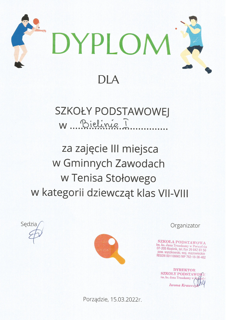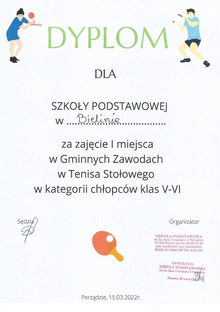 • Sukcesy w Gminnych Zawodach w Tenisie Stołowym