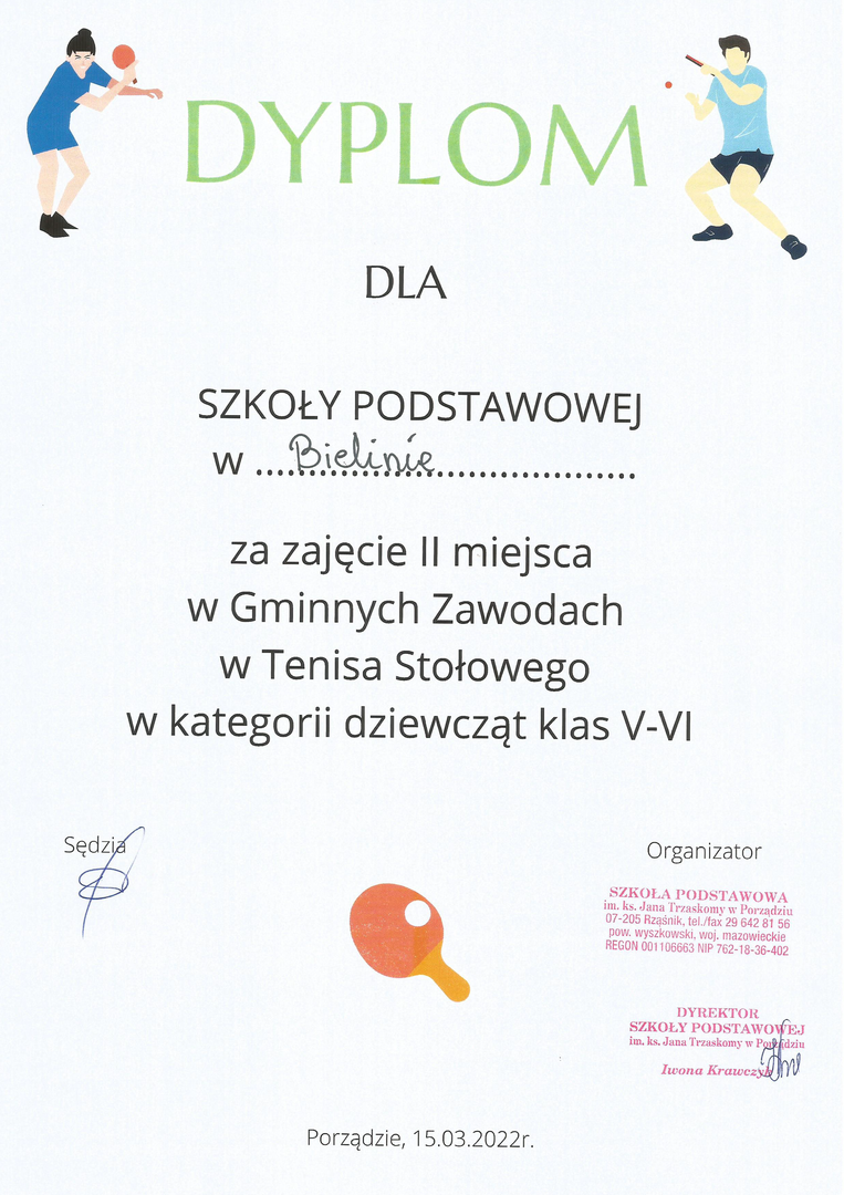 Sukcesy w Gminnych Zawodach w Tenisie Stołowym
