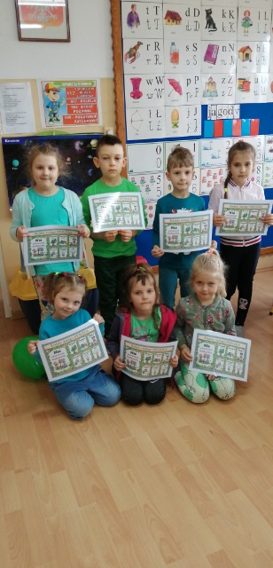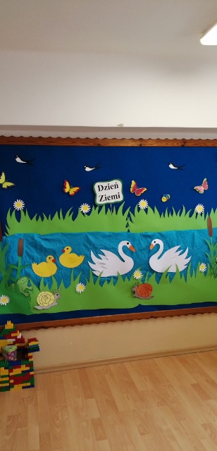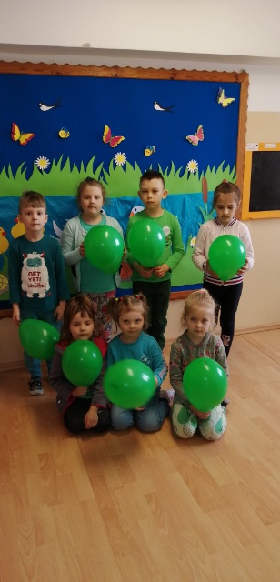 22 kwietnia przedszkolaki świętowały Dzień Ziemi w kolorze zielonym. Tego dnia miały w swoim stroju zielone elementy i towarzyszyły im zielone baloniki. Dzieci zapoznały się ze sposobami ochrony przyrody, dowiedziały się jak szanować i nie szkodzić Ziemi oraz w jaki sposób segregować śmieci. Nauczyły się piosenki "Ziemia-wyspa zielona". Rozwiązywały zagadki o treściach przyrodniczych wykazując się dużą wiedzą. Na zakończenie tego zielonego dnia,każde dziecko otrzymało "Kodeks Małego Ekologa".