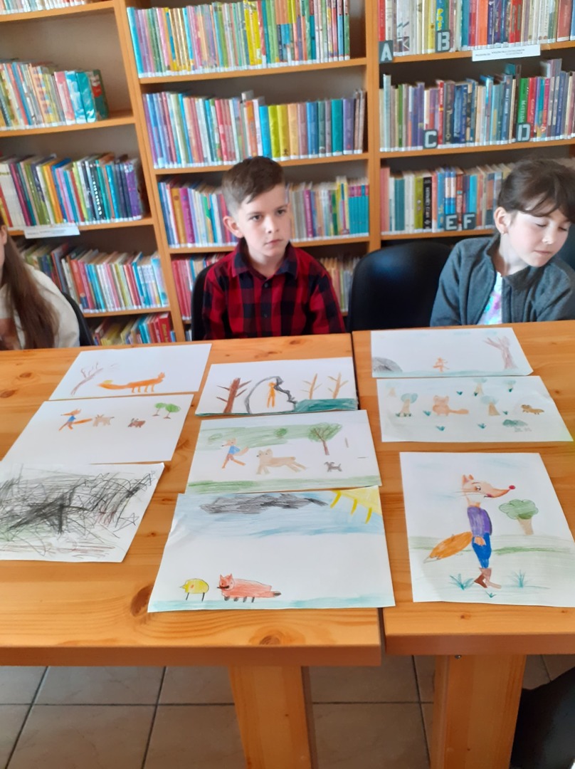 13 maja uczniowie klasy 2 i 3 uczestniczyli w lekcji bibliotecznej w Rząśniku, którą prowadził Slawomir Pierzynowski - dyrektor Gminnej Biblioteki Publicznej w Rząśniku. Dzieci poznały sposoby porozumiewania się z innymi ludźmi dawniej i dziś. Po wysłuchaniu fragmentu bajki " Szelmostwa lisa Witalisa" wykonali rysunki, były bardzo zaangażowane i chętnie dzieliły się swoimi spostrzeżeniami i odczuciami. Nie zabrakło także humorystycznych akcentów. Zwiedzili też pod przewodnictwem dyrektora bibliotekę gminną. Dzieciom bardzo podobała się ta wycieczka.