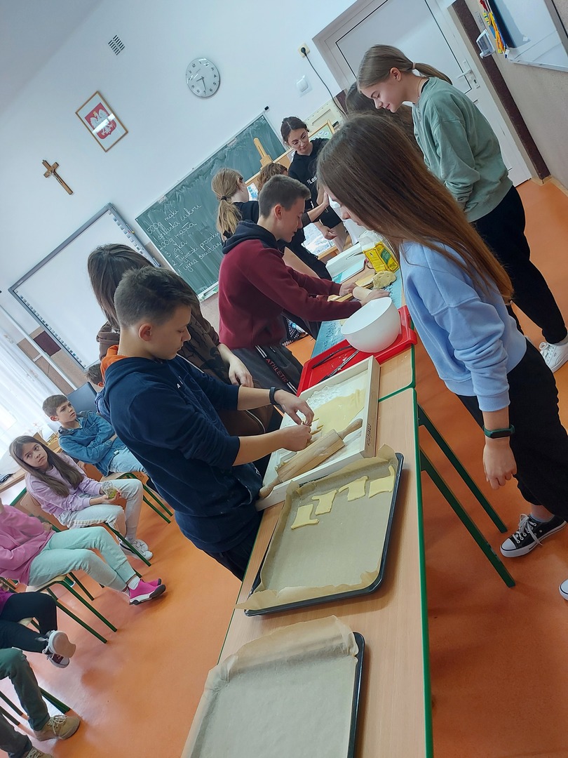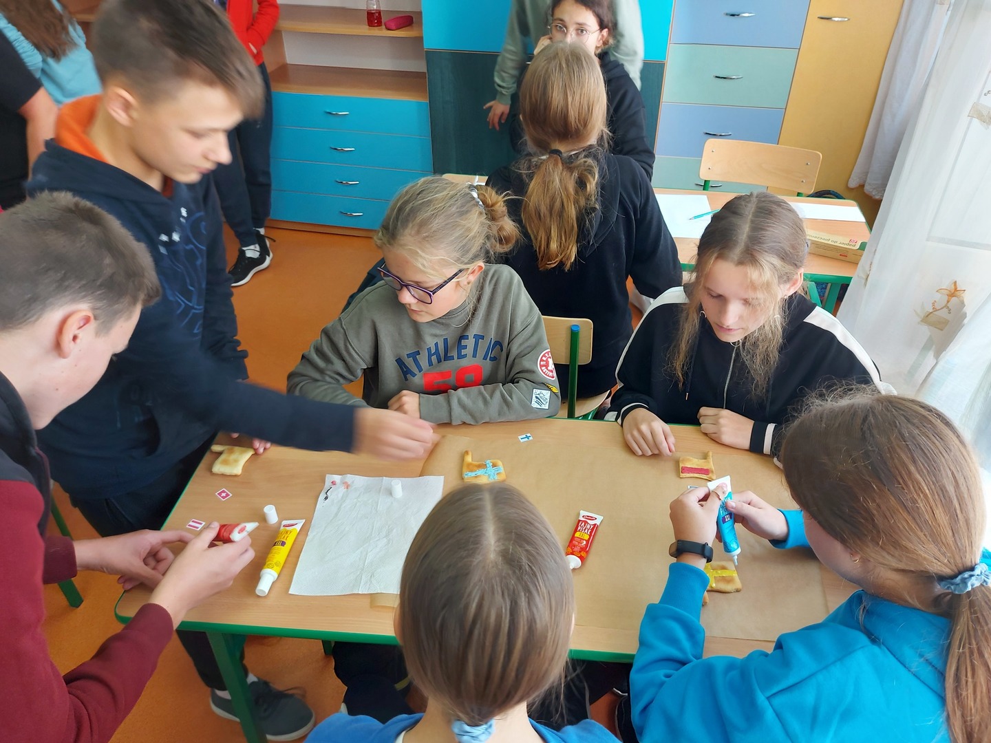 26 września jak co roku w naszej szkole obchodziliśmy Europejski Dzień Języków. W tym roku szkolnym dzień ten był jednak wyjątkowy. Uczniowie klasy ósmej przygotowali z wykorzystaniem sprzętów pozyskanych w ramach rządowego programu dla szkół „Laboratoria przyszłości” słodkie przekąski w postaci ciasteczek. Następnie wraz z uczniami klas młodszych udekorowali je przy pomocy lukru. Motywem przewodnim dekoracji były flagi krajów europejskich. W czasie dekorowania miał miejsce także quiz sprawdzający wiedzę uczniów na temat krajów europejskich oraz języków jakim te kraje się posługują. Efekt końcowy pracy naszych uczniów był zachwycający. Swoją inwencją twórczą