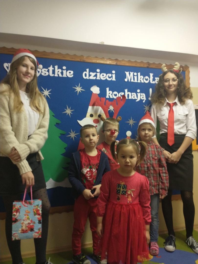 Słodkie upominki przygotował również Samorząd Uczniowski i pani dyrektor. Pani Agnieszka Nowak przeprowadziła w klasach IV-VIII mikołajkową grę. Biorąc udział w zmaganiach, uczniowie wcielili się w role tajnych agentów i rozwiązywali świąteczne zagadki. Na dzieci, którym udało się odzyskać prezenty Mikołaja, czekała słodka niespodzianka.