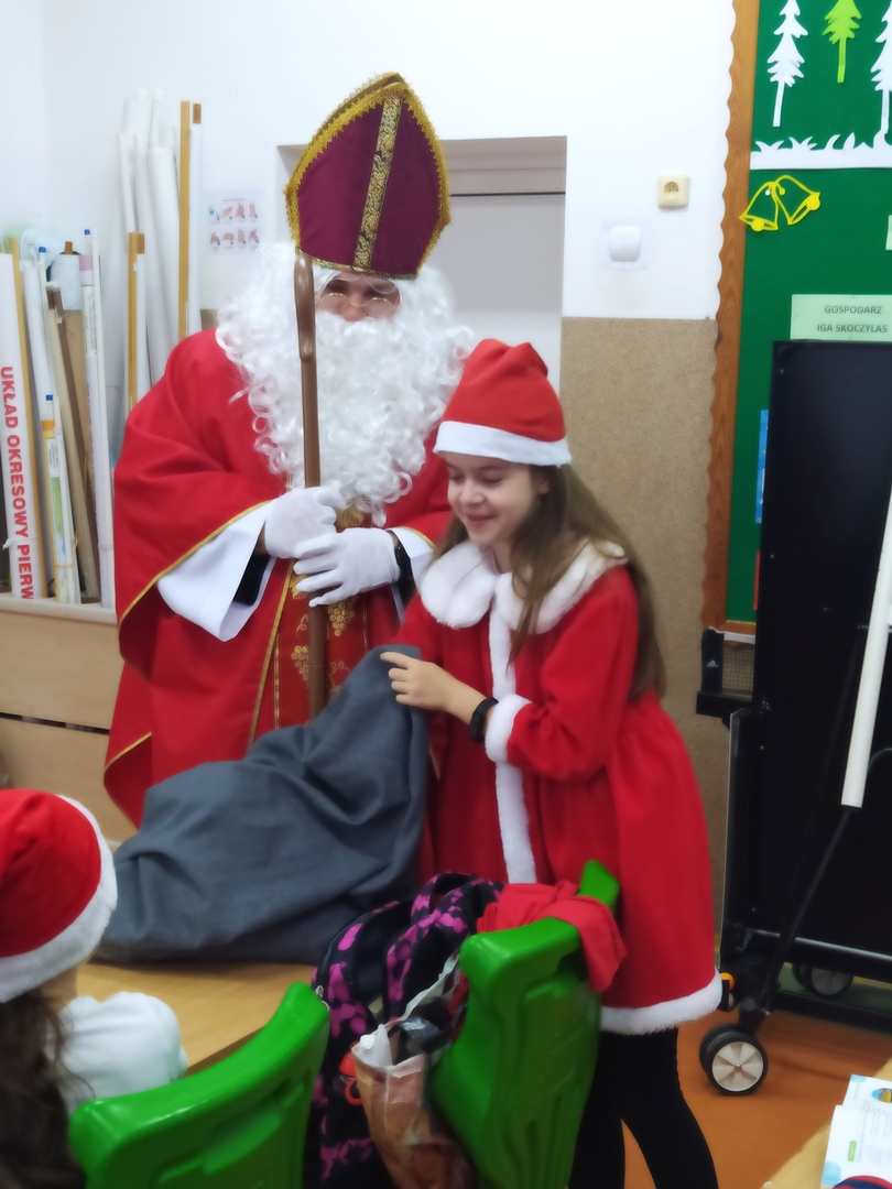 O tym, że Mikołaj nie rzuca słów na wiatr, przekonali się uczniowie naszej szkoły, których 6 grudnia odwiedził Święty Mikołaj. Uważne dzieci zauważyły, że gość nosi takie same buty jak ksiądz Mateusz. (To zapewne przypadek, że mają podobny gust .) Mikołaj odwiedził wszystkich uczniów i dzieci z oddziału przedszkolnego. Dzieci i ich opiekunowie byli grzeczni, więc wszyscy otrzymali słodkie upominki. Uczniowie chętnie śpiewali Mikołajowi piosenki i kolędy oraz udzielali odpowiedzi na pytania gościa. To była też niepowtarzalna okazja, aby wręczyć listy z życzeniami bezpośrednio Mikołajowi. Dzieci obdarowały gościa kartami z życzeniami życzeniami.