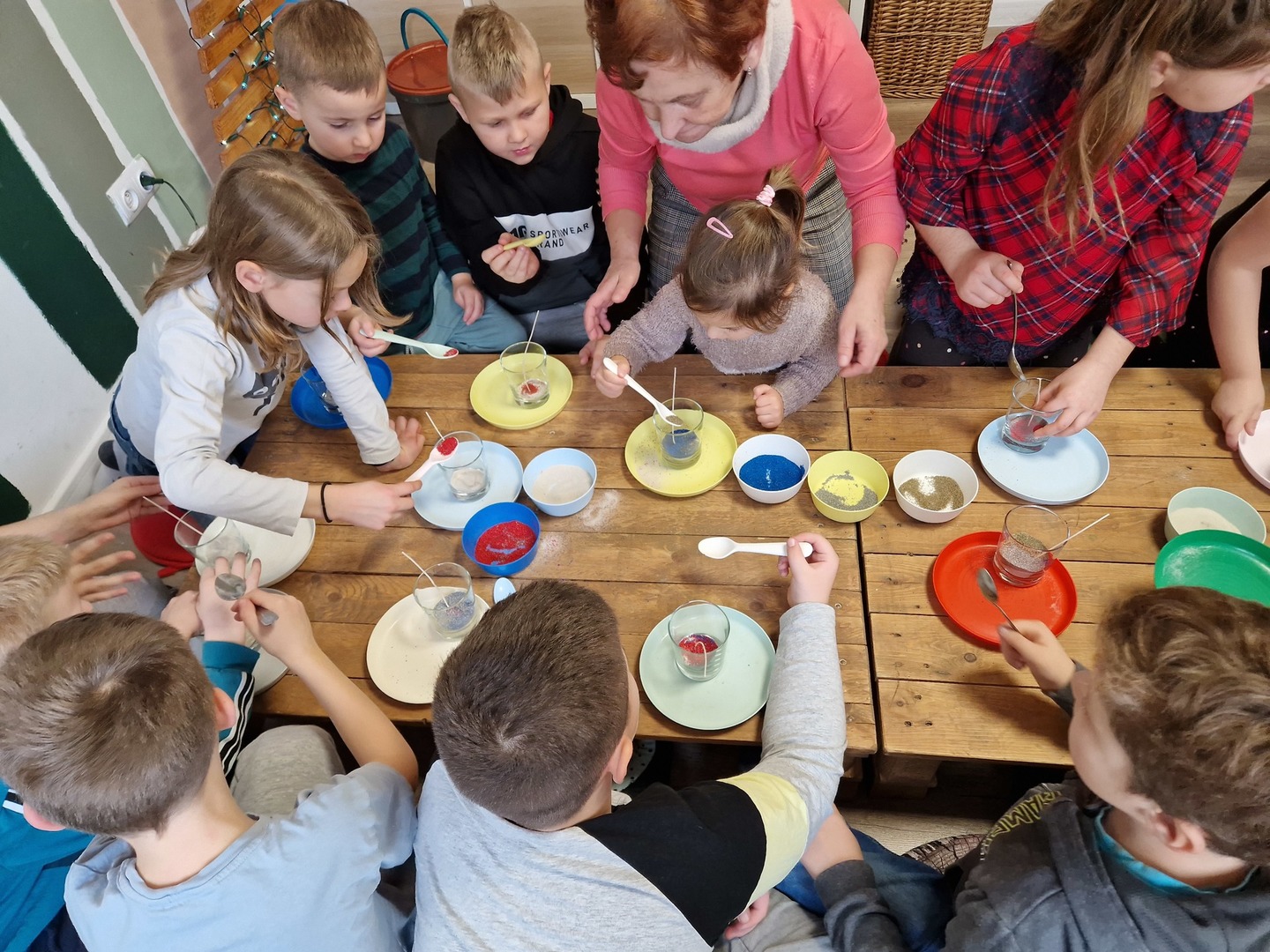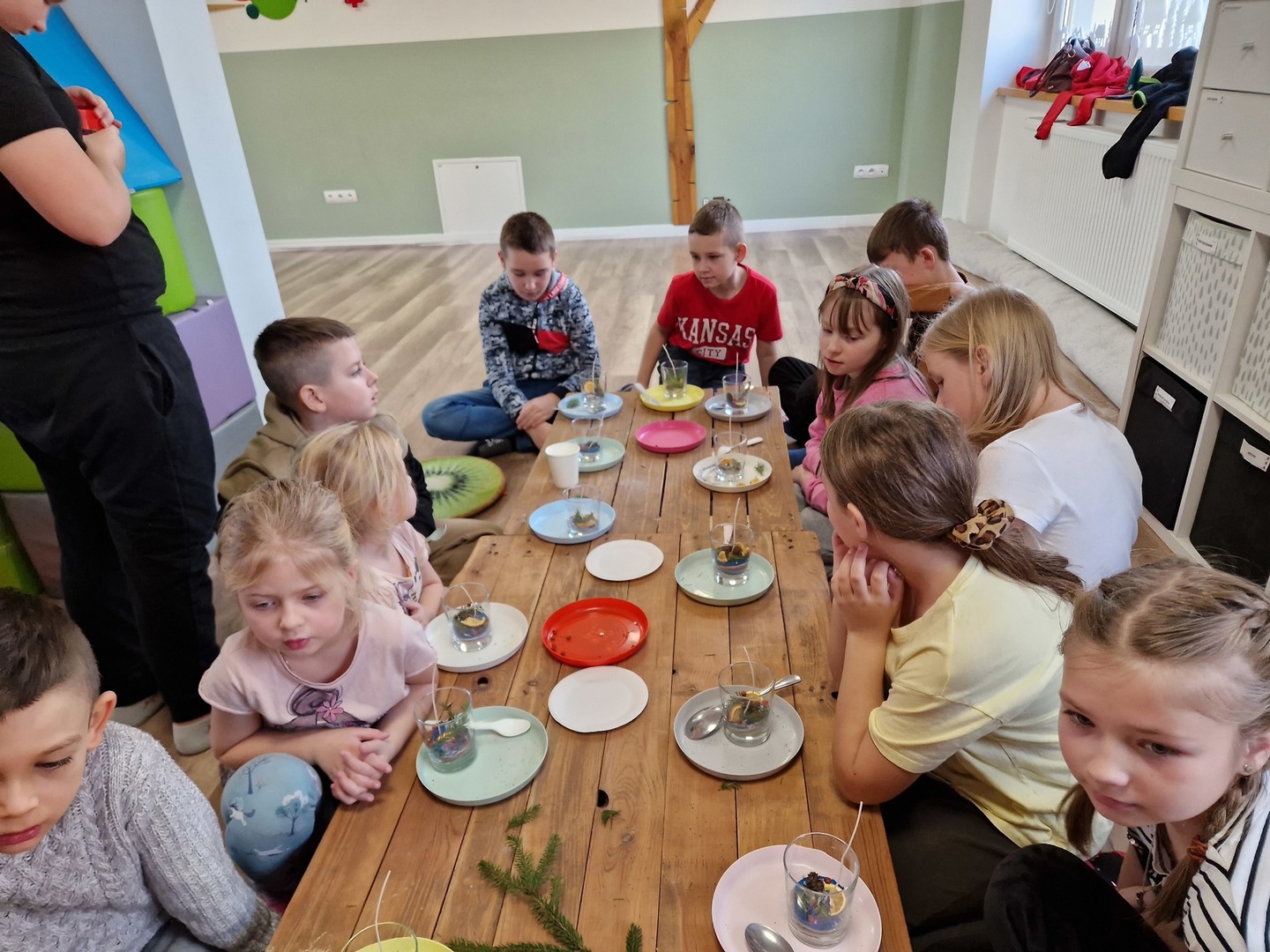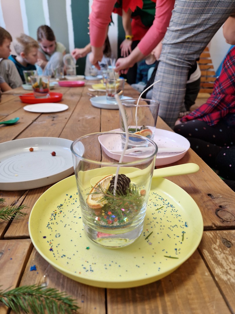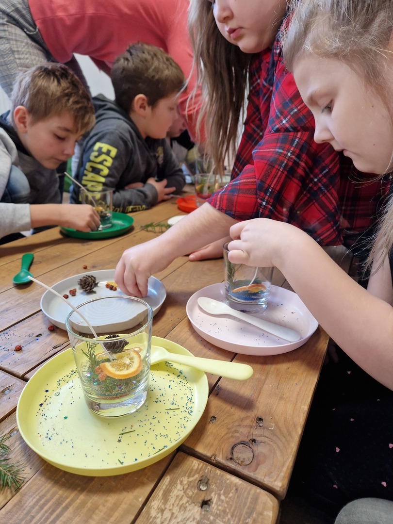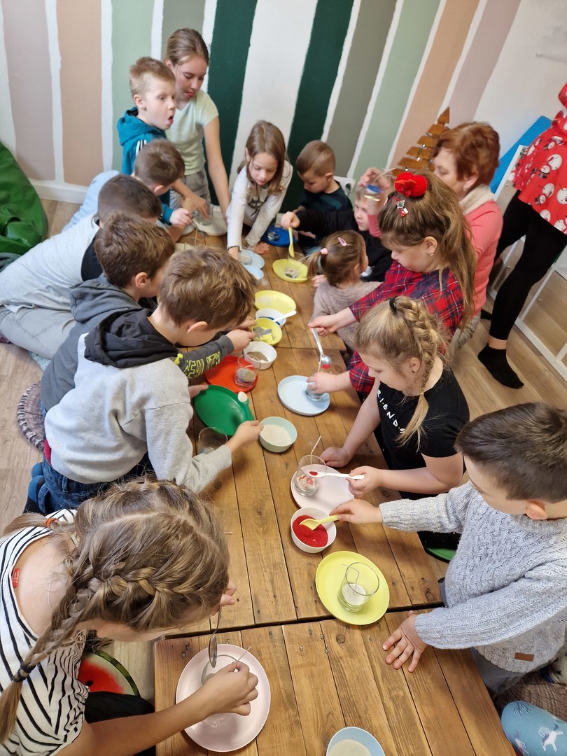 8 grudnia dzieci z klas 0-III i kilkoro uczniów klas starszych wzięło udział w warsztatach świątecznych, które odbyły się w Polanie dla dzieci w Wyszkowie. Na początek dzieci wzięły udział w zabawach integracyjnych: śnieżne zaprzęgi, taniec z chustami na lodzie, poszukiwanie marchewek dla reniferów i rozmowach na temat świąt i prezentów. Kolejnym punktem programu było wykonanie świec żelowych z wykorzystaniem piasku, kawałków pomarańczy, świerkowych gałązek i kolorowych cekinów. Każdy mógł sobie wybrać, jakiego zapachu użyje do swojej świecy (dla niektórych osób był to niełatwy wybór). Najtrudniejszy był okres wyczekiwania na zastygnięcie wosku. Na szczęście został on wypełniony kolejną porcją szalonych zabaw. Należały do nich m. in.: trasa przez przeszkody w okularach imitujących złożone oczy i bitwa na śnieżki. Na koniec dzieci wzięły stworzone przez siebie świece, aby zapalić je przy świątecznym stole i wyruszyły na posiłek do restauracji McDonald’s. To był krótki, ale intensywnie spędzony czas.
