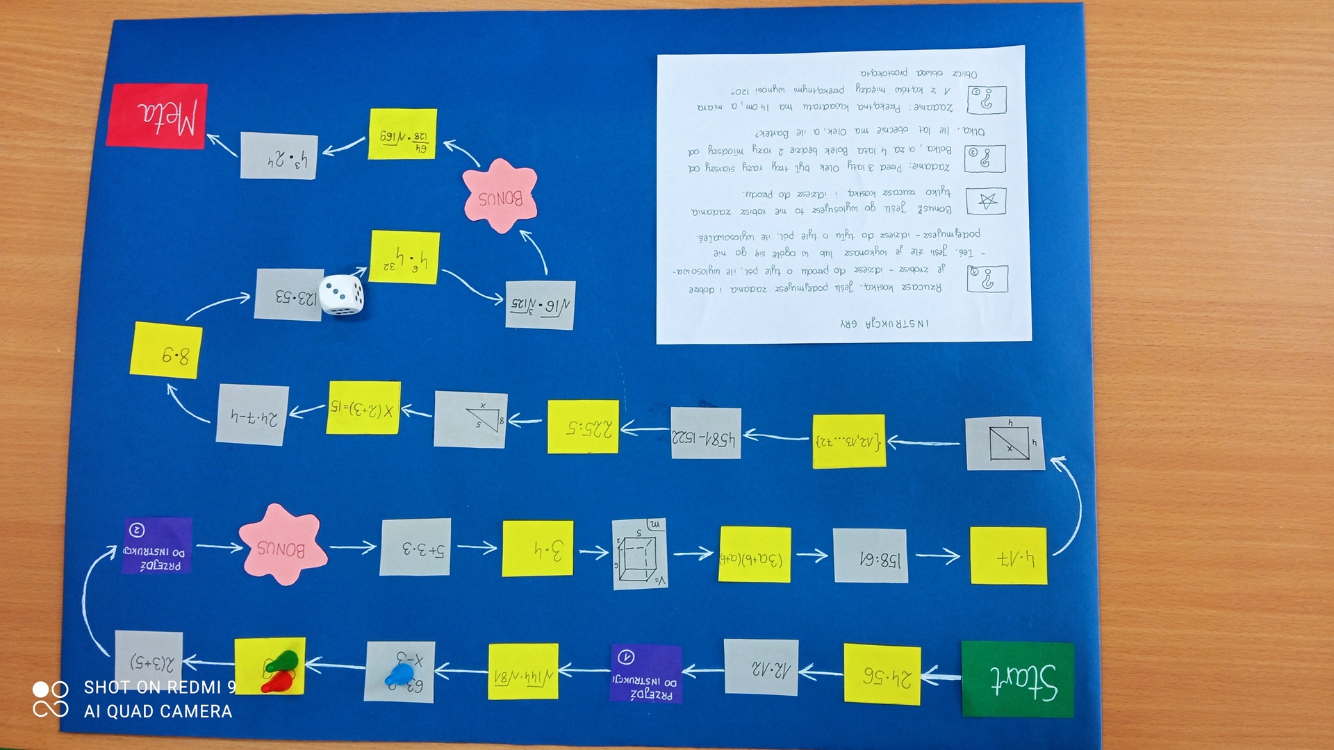 4 stycznia 2023 roku w klasie VIII odbyło się podsumowanie pracy projektowej z matematyki „Matematyczne gry stolikowe”. Celem projektu było kształtowanie u uczniów zdolności pozyskiwania i wykorzystywania posiadanej wiedzy matematycznej w praktyce, jak również rozwijanie wyobraźni, kreatywności i twórczego myślenia poprzez tworzenie logicznych gier planszowych.