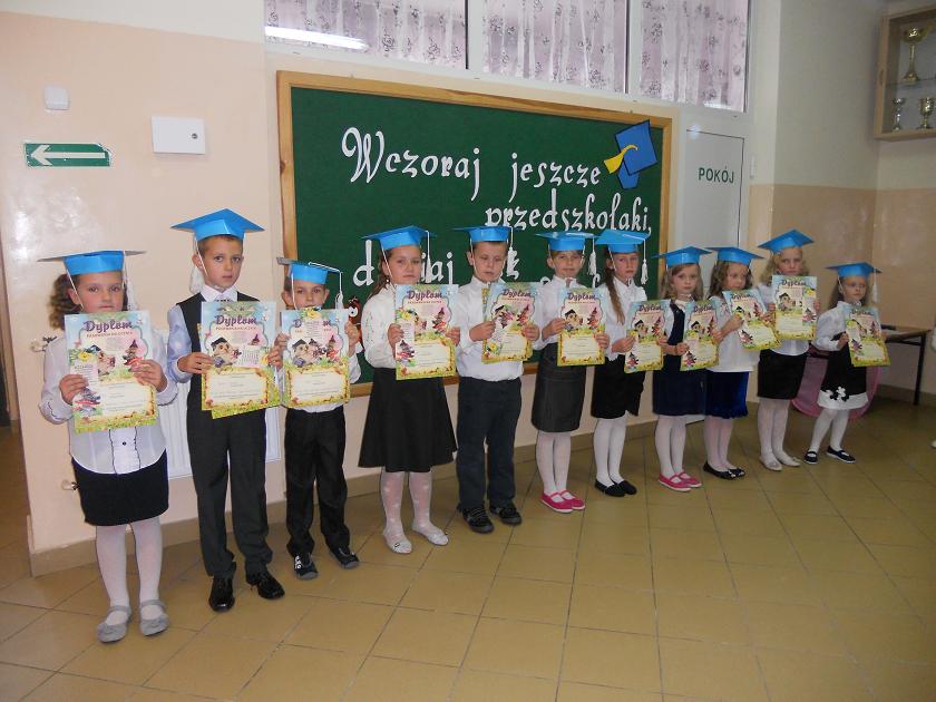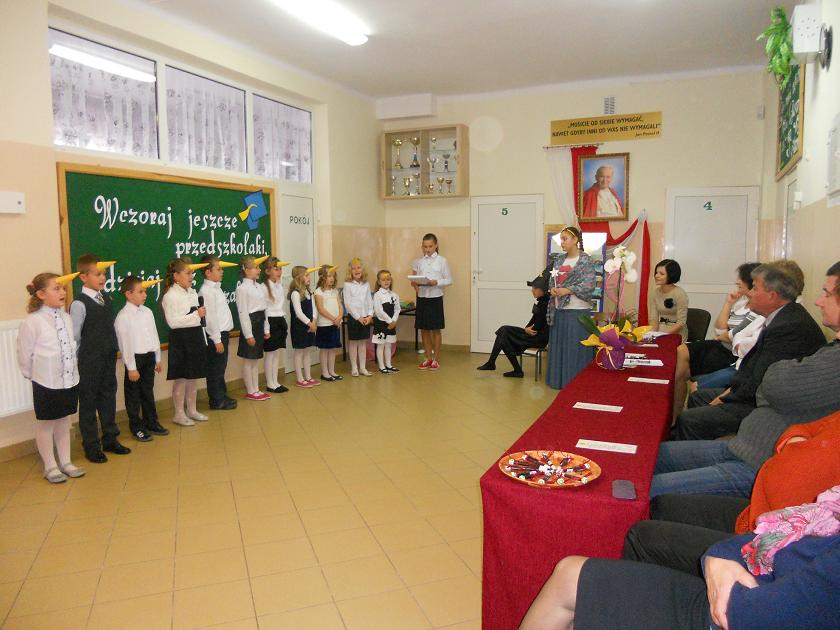 Pod opieką wychowawcy, pani Anny Ponichtery, dzieci przygotowały część artystyczną, podczas której pożegnały się z przedszkolem i udowodniły, iż zasługują na przyjęcie do społeczności uczniowskiej. A przedstawiciele Samorządu Uczniowskiego obiecali zawsze służyć pomocą swoim młodszym kolegom i koleżankom.