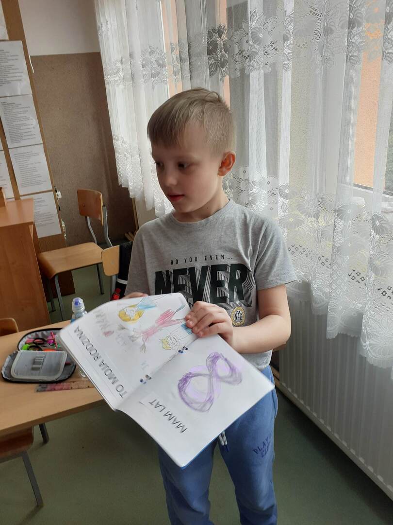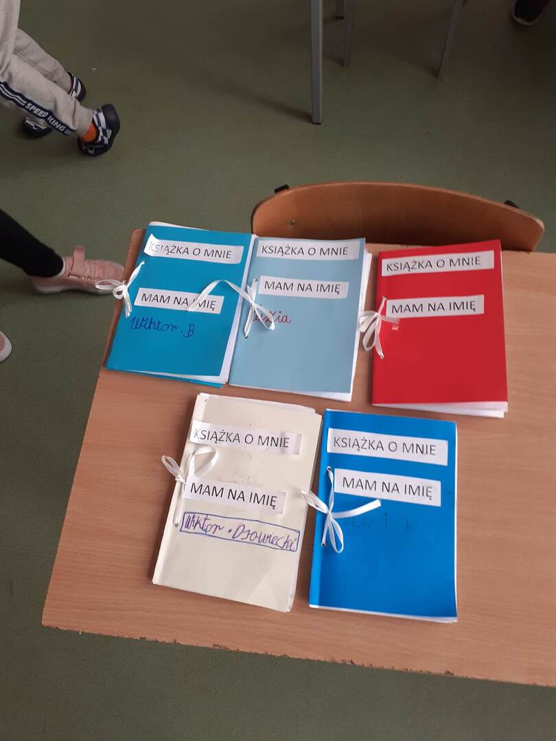 Uczniowie klasy 1 tworzyli swoje pierwsze książeczki pt. "Książka o mnie". Można się z nich wiele dowiedzieć o poszczególnych uczniach klasy 1 np. o ulubionych daniach, o rodzinie, o zainteresowaniach, o marzeniach itp. Dzieci z wielkim entuzjazmem ozdabiali kolejne strony książki, a potem chwalili się nimi kolegom, rodzicom i nauczycielom.Nastepnie wymienili się swoimi książeczkami. Była to doskonała okazja, żeby lepiej poznać swoich kolegów i koleżanki z klasy. Wszyscy podziwiali i chwalili siebie nawzajem. Byla to świetna okazja do zacieśniania więzi i integracji zespołu klasowego.