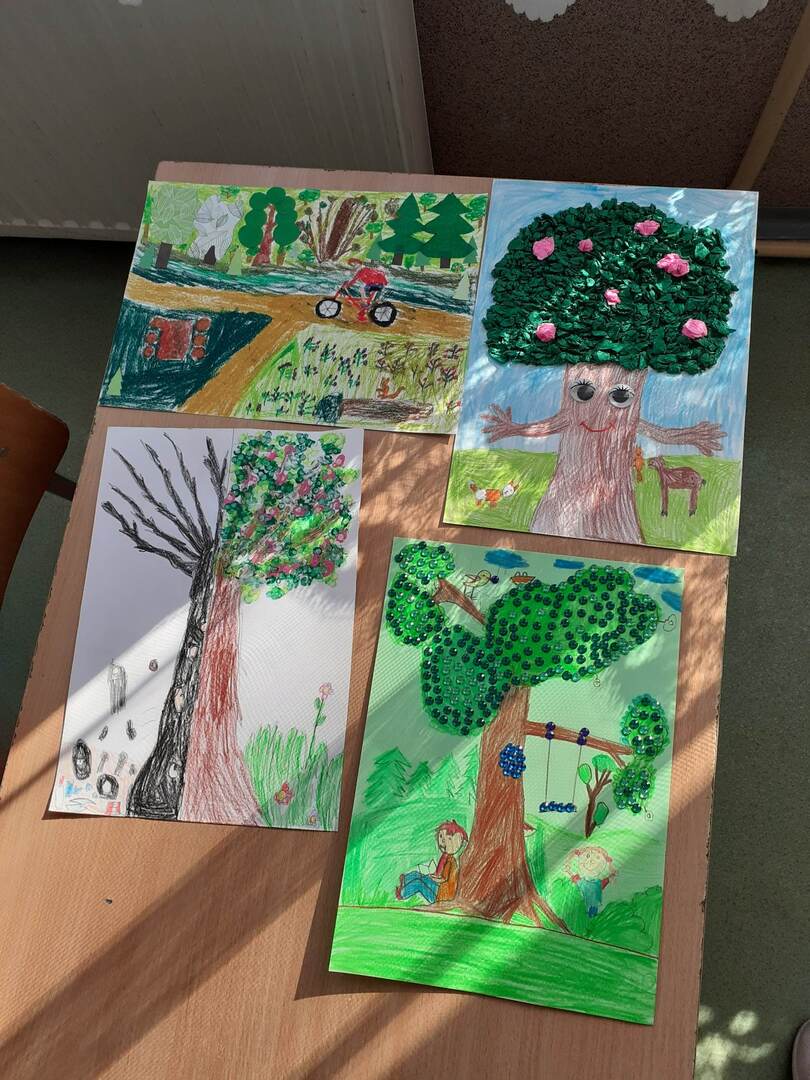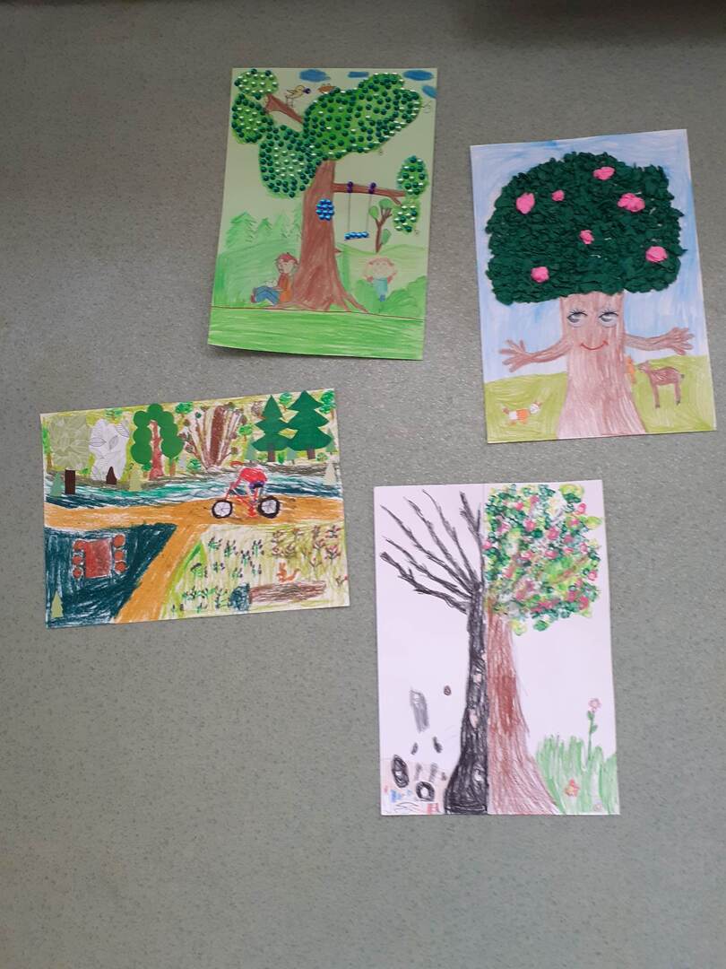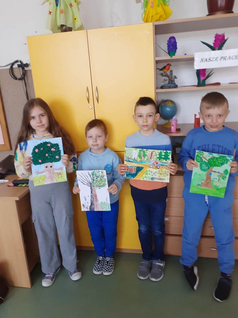 Uczniowie klasy I wzięli udział w powiatowym konkursie plastycznym "Drzewa - nasi przyjaciele". Alicja Borkowska, Michał Stopka, Wiktor Baranowski i Błażej Kamiński wykonali prace o tematyce ekologicznej.