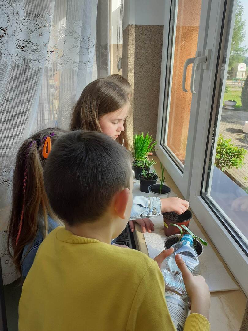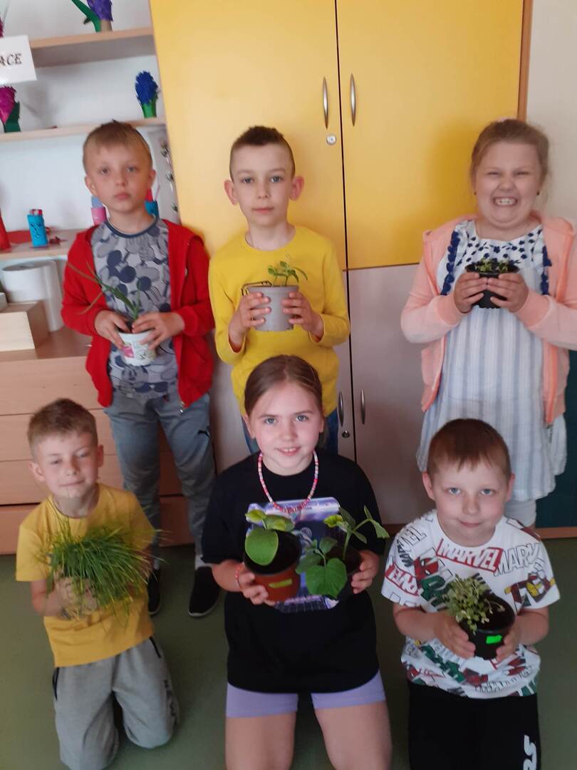Uczniowie klasy I w połowie maja postanowili założyć ogródek na parapecie w klasie. Na początku dzieci dyskutowały, co mogłyby zrobić w naszej klasie, by mieć ładny ogródek i móc go stale obserwować i o niego dbać. Wspólnie ustaliliśmy, co potrzebne jest do zrobienia zielonego ogródka na oknie, co trzeba robić, by roślinki urosły. Dzieci postanowiły, że chcą mieć taki ogródek na parapecie i obiecały, że będą o niego dbały. Otrzymały doniczki i posiały nasionka w ziemi., Po wysiewie podlały swoje ogródki i wystawiły na parapet, by roślinki miały dużo światła. Jest już początek czerwca i roślinki pięknie nam wyrosły. Dzieci codziennie obserwowały jak kiełkuja poszczególne roślinki. Cały czas wykazują duże zainteresowanie naszym ogródkiem, cieszą się, że roślinki tak pięknie rosną, porównują je z roślinami kolegów, dbają o swoje uprawy na parapecie. Kto wie - może uda im się zebrać plony?