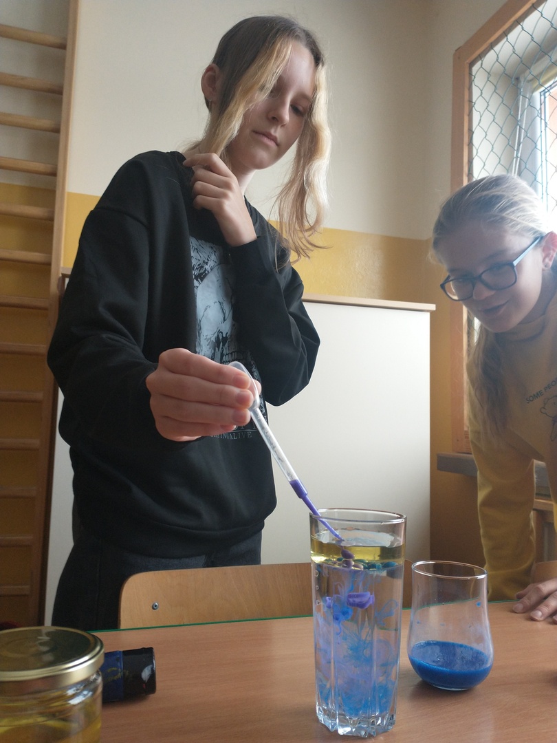 Uczennice klasy VII na lekcjach fizyki zastanawiały się, czym różnią się siły spójności od sił przylegania, co to jest napięcie powierzchniowe i czy można je "pokonać" oraz ile kropli zmieści się na monecie pięciogroszowej? Pomocą w rozstrzygnięciu tych trudnych pytań okazały się przygotowane przez nie doświadczenia.