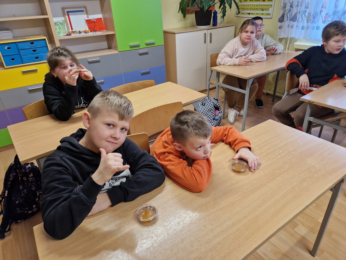Na koniec pan Waldemar wręczył wszystkim słodki upominek - miód ze swojej pasieki.