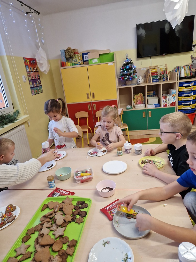 8 grudnia przedszkolaki gościły Panią Monikę, mamę Leny i Patryka. Pani Monika przeczytała dzieciom książkę, pt. ,,Bałwanek”, której dzieci z wielką uwagą słuchały. Pani Monika przygotowała dla dzieci miłą niespodziankę i wspólnie z nami przygotowała pierniczki świąteczne, które dzieci samodzielnie udekorowały😊 Bardzo dziękujemy za miłe chwile i poświęcony nam czas🥰🥰🥰