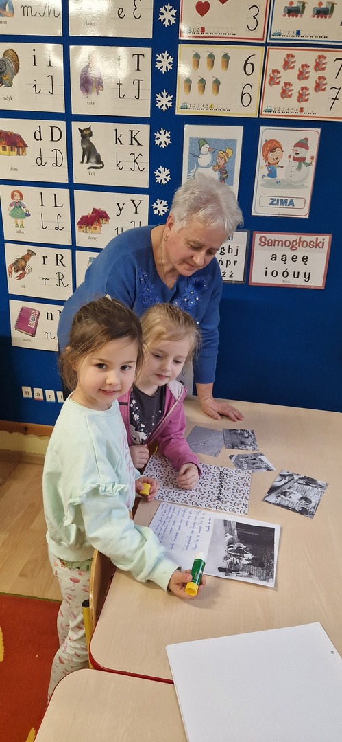 Dzieci słuchały bajki z zapartym tchem domagając się dalszych opowieści. Pani Wiesia opowiedziala nam w co bawiły sie dzieci, kiedy ona była mała. Graliśmy w ,,Chłopka" i gumę, oglądaliśmy stare fotografie dziecięcych zabaw. Na koniec wykonaliśmy ,,Zabawownik" czyli spis zabaw. Nie obyło sie bez ciasteczek😉. Spotkanie sprawiło nam wiele radości. Bardzo dziękujemy za spędzony z nami czas i zapraszamy chętnych rodziców czy dziadków do czytania nam bajek🙂.