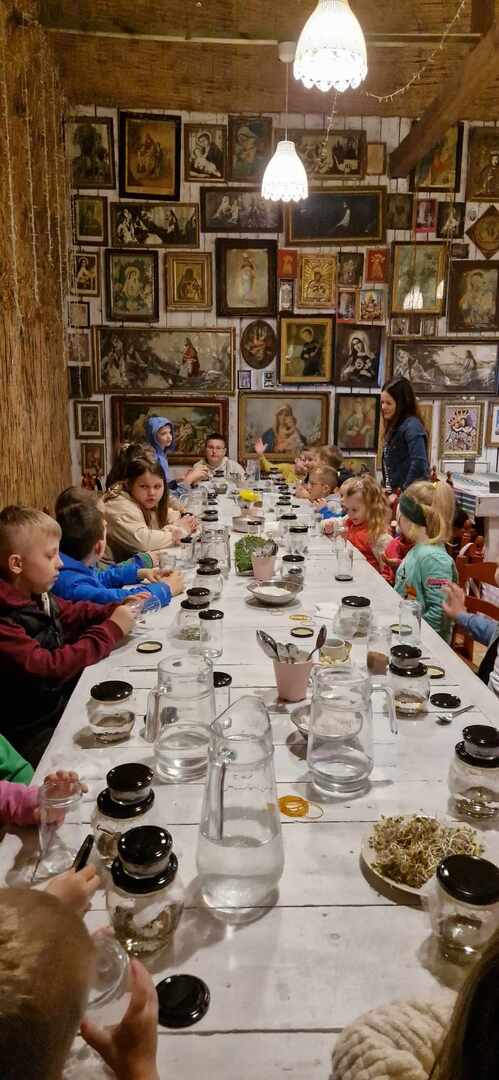 Na początku dzieci uczestniczyły w lekcji z przyrodnikiem, który opowiedział o narodzinach w świecie leśnych zwierząt. Następnie wszyscy udali się na warsztaty, podczas których przygotowali domową plantację kiełków, wysiali rzeżuchę i nastawili zakwas na żur. Następnym punktem wycieczki było odszukiwanie z mapą schowanych zwierzątek na terenie siedliska i pobyt na niepowtarzalnym placu zabaw.