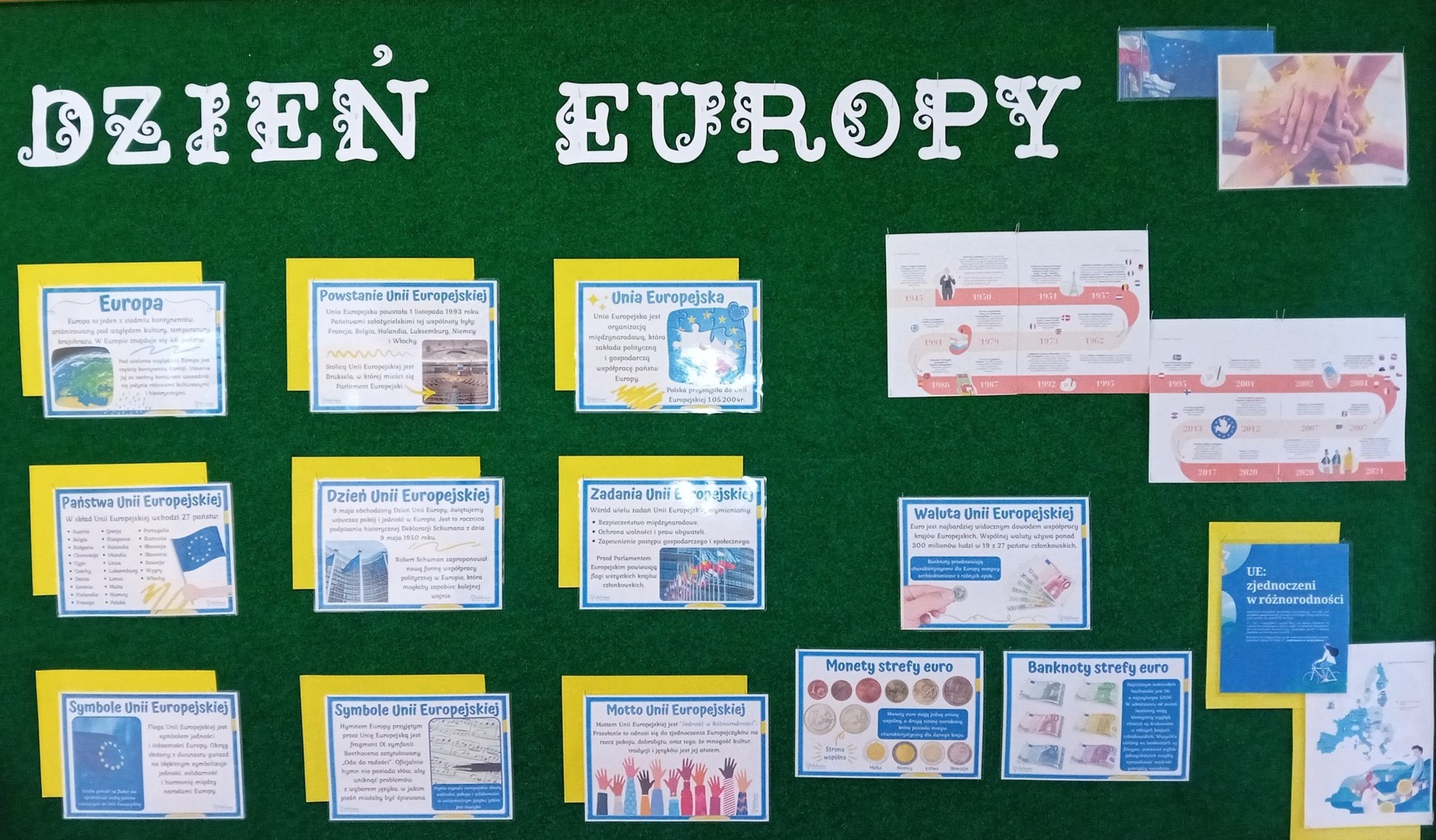 Dzień Europy jest dniem, w którym co roku świętujemy pokój i jedność w Europie. Tego dnia przypada rocznica podpisania historycznej Deklaracji Schumana. W naszej szkole jest to zawsze okazja do poznawania kultury krajów europejskich, ich zwyczajów i symboli poprzez różne działania edukacyjne, takie jak prezentacje, dyskusje oraz projekty grupowe.
