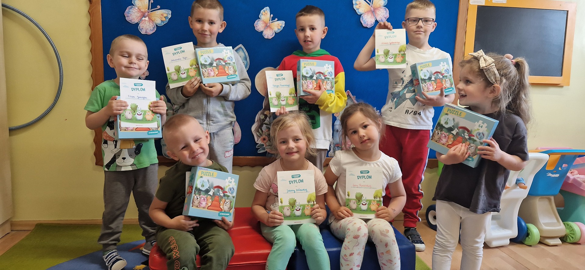 W ramach programu edukacyjnego „Czyściochowa Akademia”, przedszkolaki przystąpiły do ogólnopolskiego konkursu, który polegał na wykonaniu pracy plastycznej pt. „Czary na placu zabaw”. Praca nawiązywała do słuchowiska Czyściochowe przygody – „Świnka Zakatarzynka i czerwona zjeżdżalnia”. Spotkała nas miła niespodzianka, okazało się, że za wykonanie i przedstawienie interpretacji projektu otrzymaliśmy nagrodę dla grupy w postaci puzzli z bohaterami Czyściochowa dla każdego dziecka. Dzieci otrzymały również dyplomy. W trakcie powadzonych zajęć dzieci pozyskują cenną wiedzę z zakresu higieny, a przede wszystkim mogą w praktyczny sposób, za pomocą metody eksperymentów, przekonać się o tym, jak ważne jest zachowanie higieny, czystości i co może wiązać się z nieprzestrzeganiem tych zasad. Organizatorem programu jest firma Rossmann.