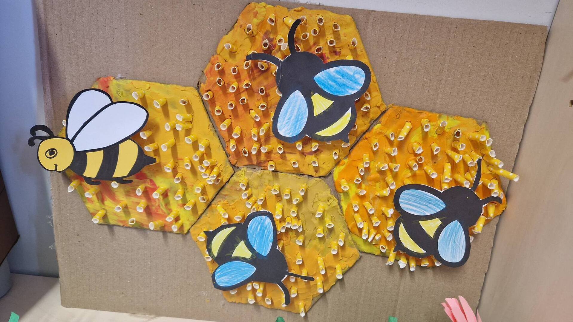 Uczniowie klasy I realizowali projekt edukacyjny „Pszczółki nasze przyjaciółki”. Celem projektu było zapoznanie dzieci z życiem pszczół, ich cyklem rozwojowym, zwyczajami, miejscem zamieszkania, szczególną rolą, jaką pełnią w przyrodzie oraz w życiu człowieka. Podczas realizacji projektu dzieci wykonały wiele prac plastycznych, konstrukcyjnych oraz zadań logicznych. Dzięki temu w sali powstał ul dla pszczół, plastry miodu oraz papierowe pszczółki.
