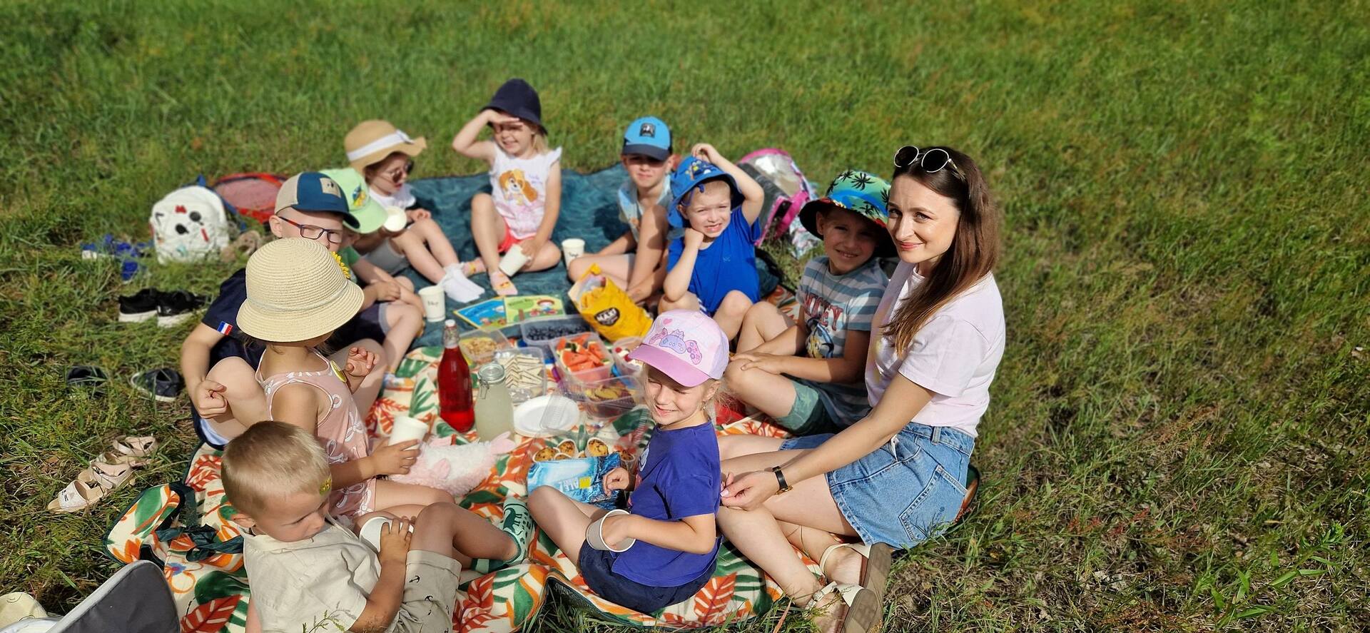 Piękna pogoda to okazja do wspólnych gier i zabaw na świeżym powietrzu. Przedszkolaki bardzo chętnie spędzają czas na szkolnym placu zabaw. Szaleństwa na świeżym powietrzu przy huśtawkach są nie tylko świetną zabawą, ale także prawdziwą nauką. Moc radości sprawiło również malowanie kolorową kredą na chodnikowych kostkach. Dzieci z wielkim zaangażowaniem wykonały obrazki związane z latem i wakacjami. Przedszkolaki w tak piękną pogodę wybrały się także na piknik. Zabrały ze sobą pyszne przekąski, gry, książeczki, piłkę i bańki mydlane. Miło spędziły czas na wspólnych zabawach na łonie natury.