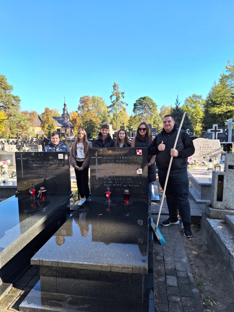 W sobotni poranek uczniowie naszej szkoły wraz z opiekunami Szkolnego Koła Wolontariatu - panią J. Gołębiewską i ks. M. Płotczykiem - uporządkowali groby lotników, którzy polegli w 1939 roku i spoczywają na cmentarzu w Nowym Lubielu oraz księży, którzy pracowali w naszej parafii. Odwiedzili również grób absolwenta naszej szkoły - sierżanta Mateusza Sitka, na którym zapalili znicze.