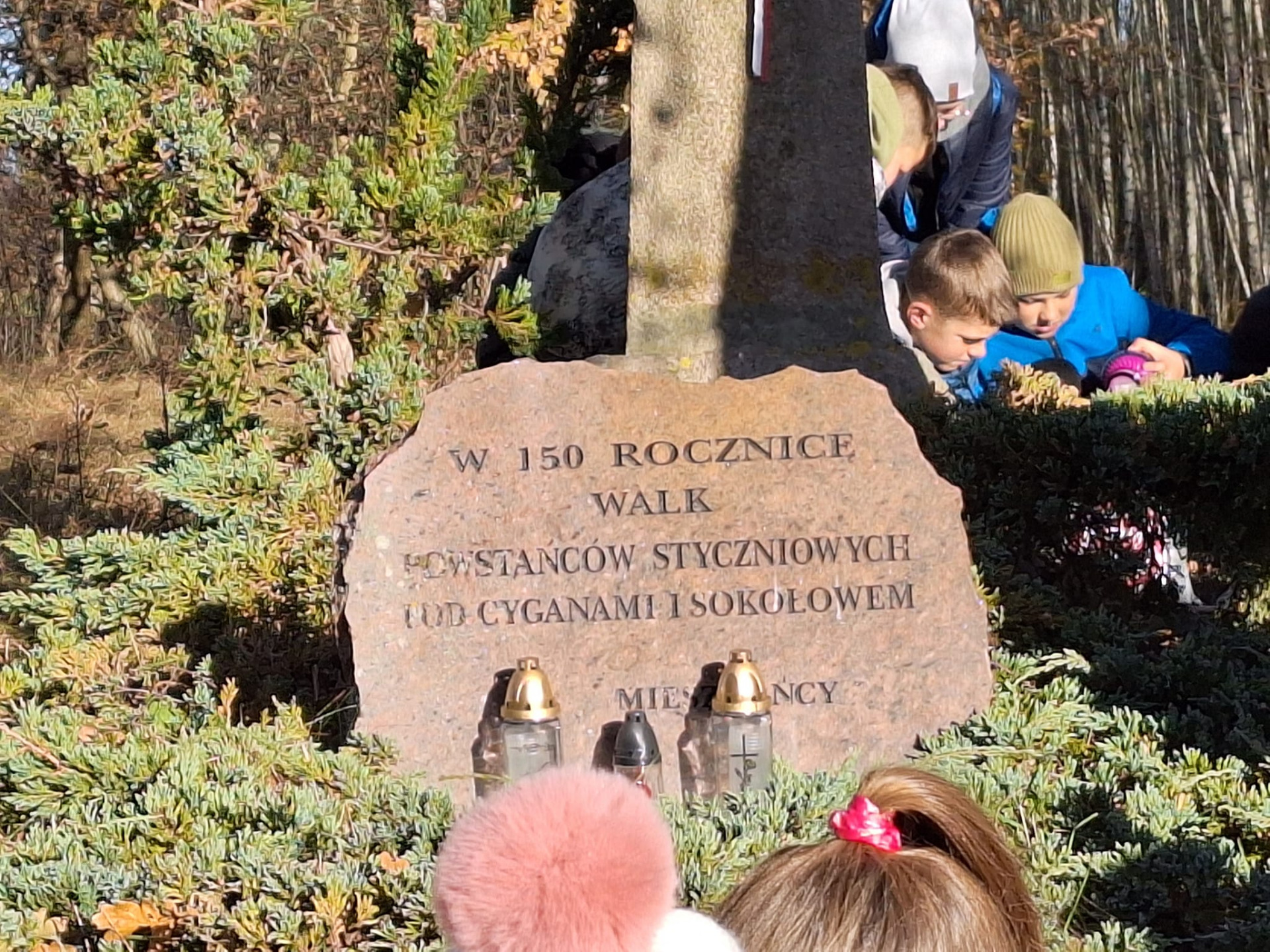 4 listopada uczniowie klas I-VIII wraz z opiekunami udali się do miejsca, gdzie spoczywają powstańcy styczniowi, którzy polegli w walkach pod Cyganami i Sokołowem. Spacer na mogiłę jest dla nas tradycyjną formą zadumy nad Świętem Zmarłych i wprowadzeniem do obchodów Narodowego Święta Niepodległości.