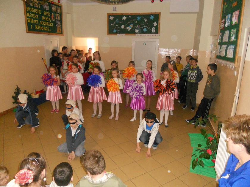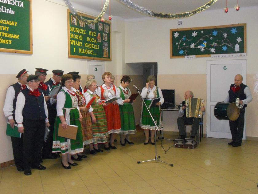 2. Uczniowie z kl. IV i VI ( Alicja Chmielewska, Aleksandra Wróbel, Karolina Budna, Aleksandra Krawczyk, Dawid Kalinowski) zaśpiewali kolędę pt. "Złota Jerozolima", którą zaprezentowali na tegorocznym Gminnym Przeglądzie Kolęd i Pastorałek, zajmując III miejsce.