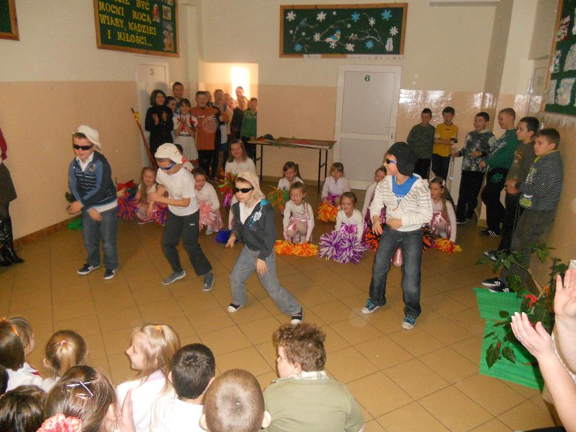 5. Uczniowie kl. I i III zatańczyli układ choreograficzny do utworu pt. "Smerfny rap".