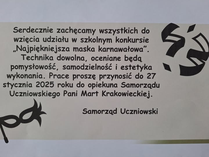 • "Najpiękniejsza maska karnawałowa" - konkurs