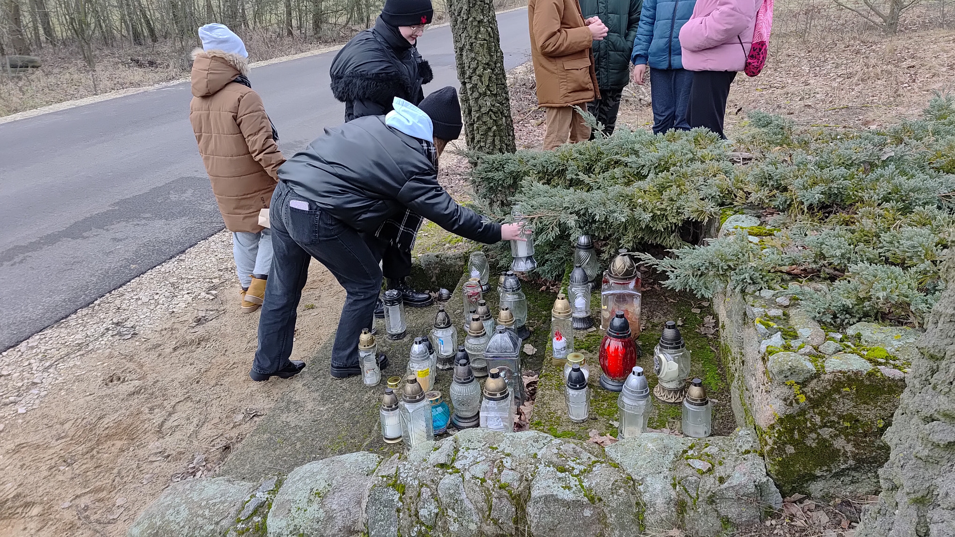 Uczniowie zapalili znicze, oddając hołd poległym. W czasie spaceru mieli również okazję podziwiać piękno otaczającej przyrody, co pozwoliło na chwilę refleksji nad historią i odwiedzanym miejscem pamięci.